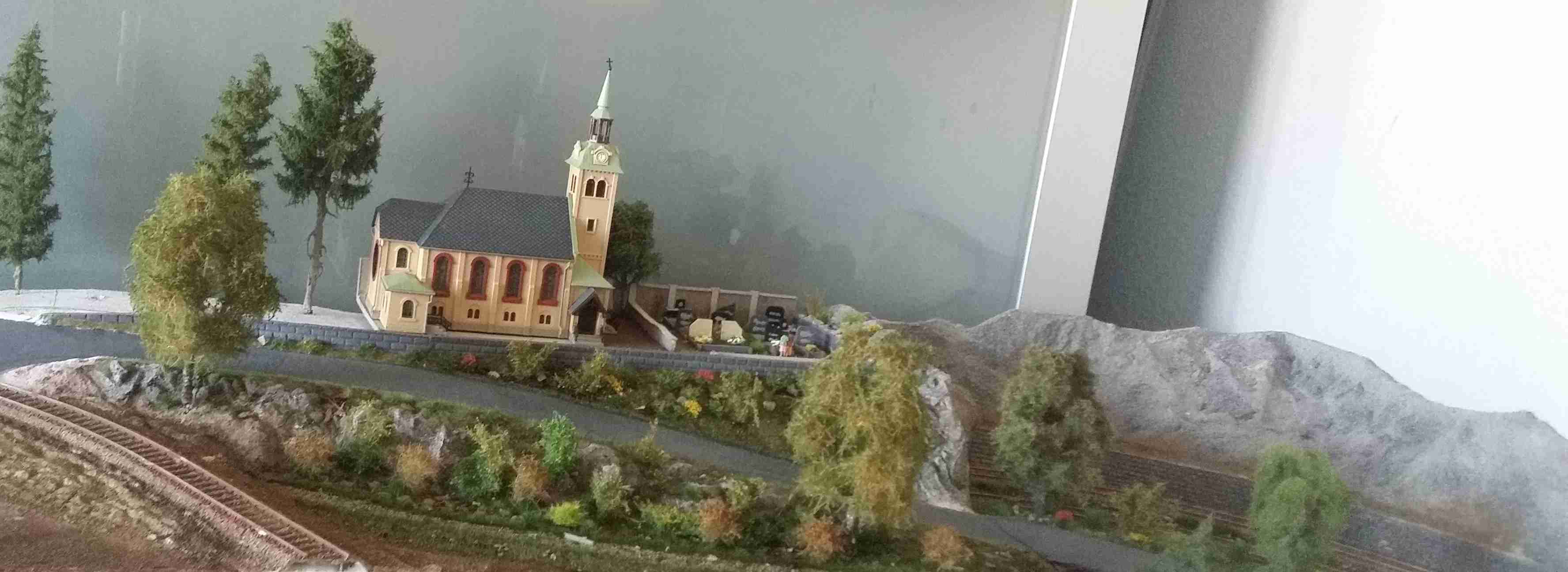 Na jednom starém kolejišti máme s mladým ten samý kostelík a hřitov. Navíc postavičky co nesou rakev k vykopané díře... a nechybí ani zubatá s kosou v koutku hřbitova.