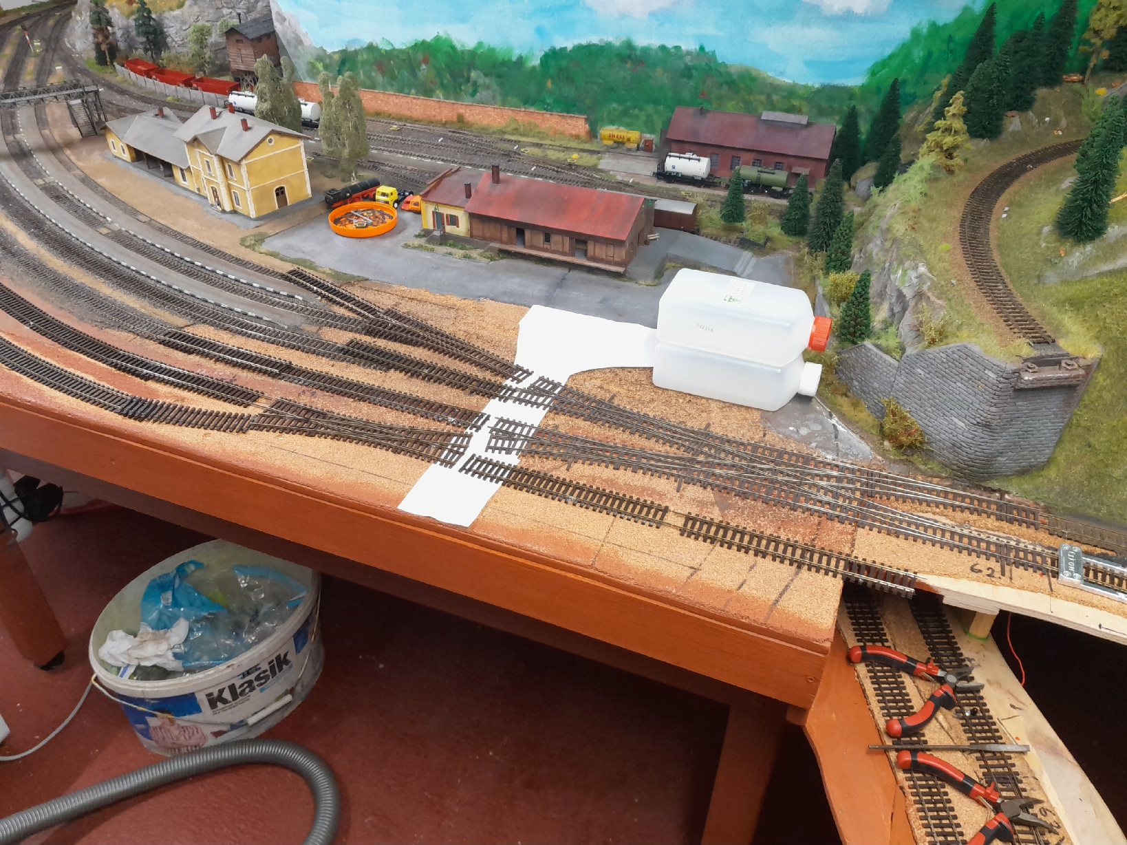 Milošův návrh je nejjednodušší,ale zničí jeden z hlavních důvodů proč jsem si nechal postavit tu kolejovou spojku: Prodloužení staniční koleje. Tím bych se vrátil zpět na začátek.