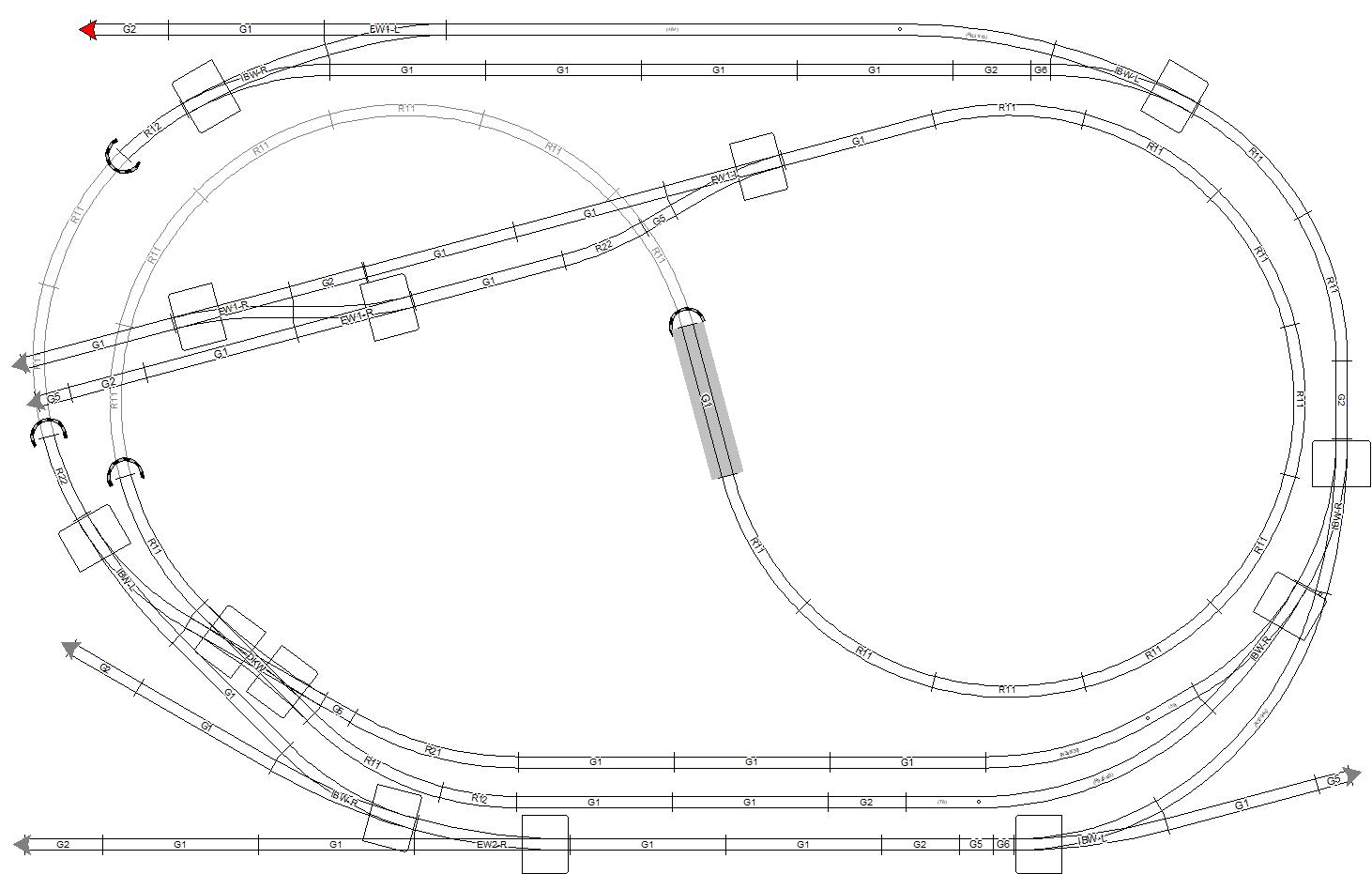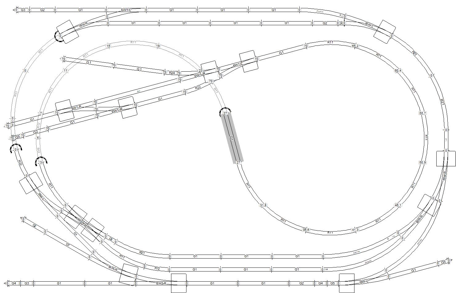 Ještě varianta 2 s vlečkou/odstavnou kolejí na koncovém nádraží (pokud bude kulisa, musí být vlečka umístěná níž, čímž ale vznikne esíčko)