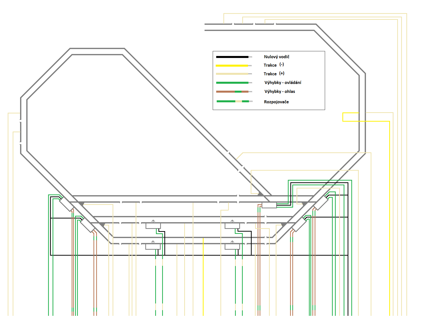 A teď drátování, drátování, drátování. Zatím jsem dotahal kabely k hotovým úsekům na smyčce, kde mi ještě chyběly, přidrátoval levé zhlaví a odjezdový úsek 3S.