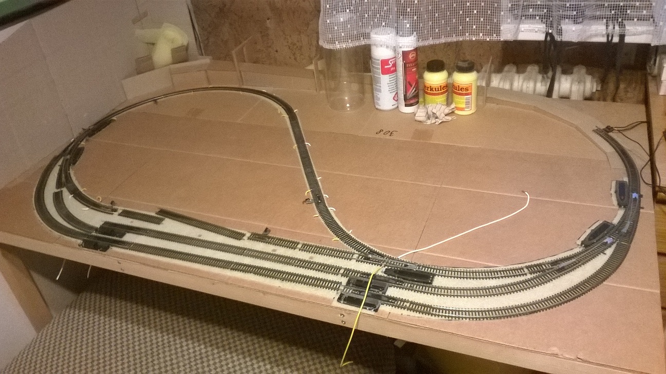 Před 3 lety jsem dolepil mirelon pod celé SN2, a přilepil kolej smyčky. Přívodní vodiče jsem vedl ke každé kolejnici téměř každého kusu koleje.