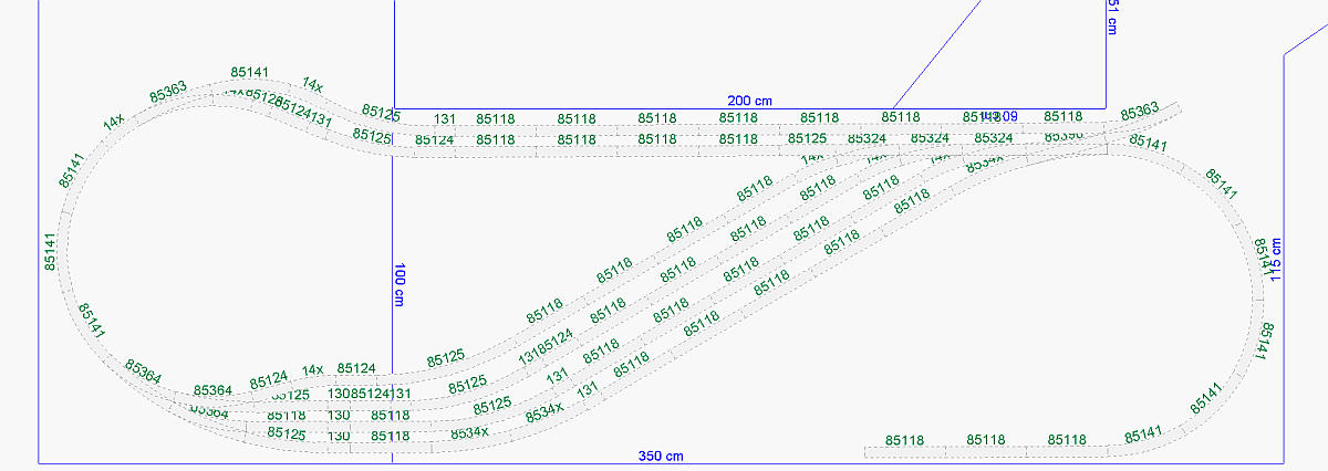 lajblt píše:Tillig HO Elite má rozteč 59 mm (~5,1 m). Ještě si zkontroluj, jestli koleje ve skryťáku jsou delší nebo alespoň stejně dlouhé jako ty v Radkově. Nemá smysl mít viditelnou délku staniční koleje 195 cm a skryťák jen 150 cm nebo podobně. Potom by dlouhé vlaky ve skrytém nádraží nemohly zastavovat, protože by ho zablokovaly. Totéž u lokálky - pokud má staniční kolej 100 cm a v koncové stanici jen 50, k čemu to je?
