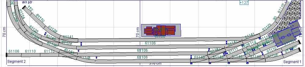 mám stále dva moduly z této zrušené stavby. Nyní buduji u domu něco jako dílníčku a sklad na vše z domu. Byl by tam prostor 400*130, ale na jedné straně jsou dveře a tam musí být 105*105. Zkoušel jsem do prostoru napasovat dva moduly co mám, ale nijak se mi to nedaří. Zkusil jsem podle jednoho vzoru s fora napasovat do prostoru toto je to jen návrh a do stavby daleko...co myslíte? Rozděleno na tri celky, abych nemusel nikde řezat výhybky do toho nejdu. Musím zužitkovat veškeré kolejivo ze staveb tedy zase geoline poprípadě doplním flexi kolejema -myslím, že všechnomám doma. Stoupání všude ok výška stanice +300 vlevo spirála do SN. Je to velký prostor, ale všude jen koleje