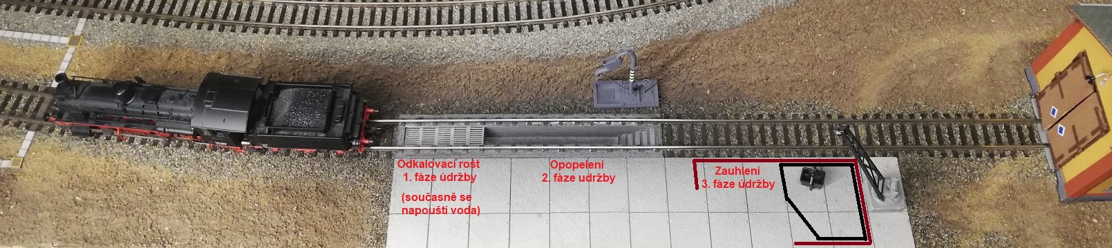 Polabský píše:To zbrojení lokomotivy má více stupňů. V prvním se jede pouze pro vodu a zároveň se musí odkalit, to je zpravidla první část jámy, často se sítem kde se vypouštějí kaly. To se nedá dělat do popele, protože by ho to nafoukalo všude, kde je to nežádoucí (parní stroj, ložiska vypružení. Na vodu a kanál si jezdí i "cizí" mašiny. Popel ale nesmí být moc blízko uhlí z požárních důvodů. Když se mašina vrací do depa, tak absolvuje tuto první etapu a pak se dobere uhlí a mašina se předá k případným provozním ošetřením a opravám. Po dobu odstavení se udržuje klidný oheň.