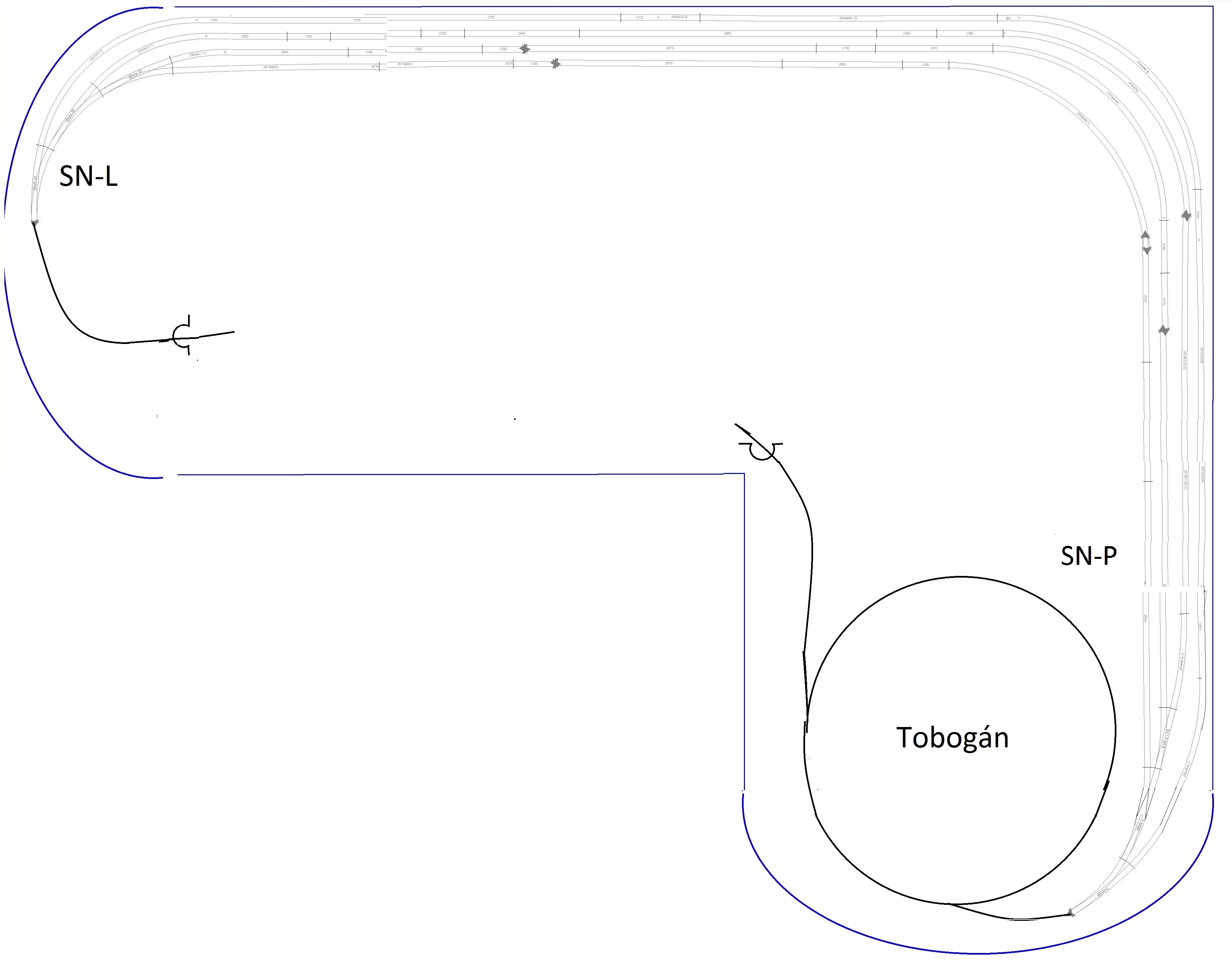 Rozdělení kolejí v SN:Tuto problematiku jsme s kolegy řešili několik týdnů. Rozdělení nádraží na dvě skupiny je z důvodu jednodušího zapojení vlakových cest. V případě vjezdu na všechny čtyři koleje by zde byla možnost setkání dvou vlaků "proti sobě". Do stanice by se určitě nějaká ta kolej navíc vešla ale za podmínky, že by již byl horší přístup ze spodní strany rámu kvůli údržbě a případným problémům. Výškový přístup v SN by neměl být problém. V levé části je mezera mezi žebry něco kolem 13cm. V pravé části je již něco kolem 20cm viz přiložené foto.