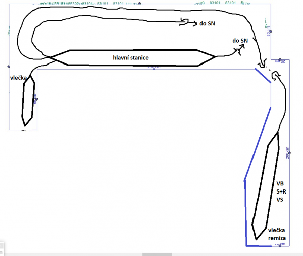 Rocky_MK píše:Stačí tu rozšířit tu pravou nudli na 40-50 cm. Pak se tam šikmo krásně vleze koncová stanička s remízou a vlečkou. Tu šířku hlavního panelu 70 cm jsem si nevšiml. Je to docela málo na to, aby se tam otočila hlavní trať i lokálka. Ale stačilo by jen část toho hlavního panelu rozšířit a hlavní stanici dát trochu zešikma, aby se dala pro otočení obou tratí využít maximální šířka.