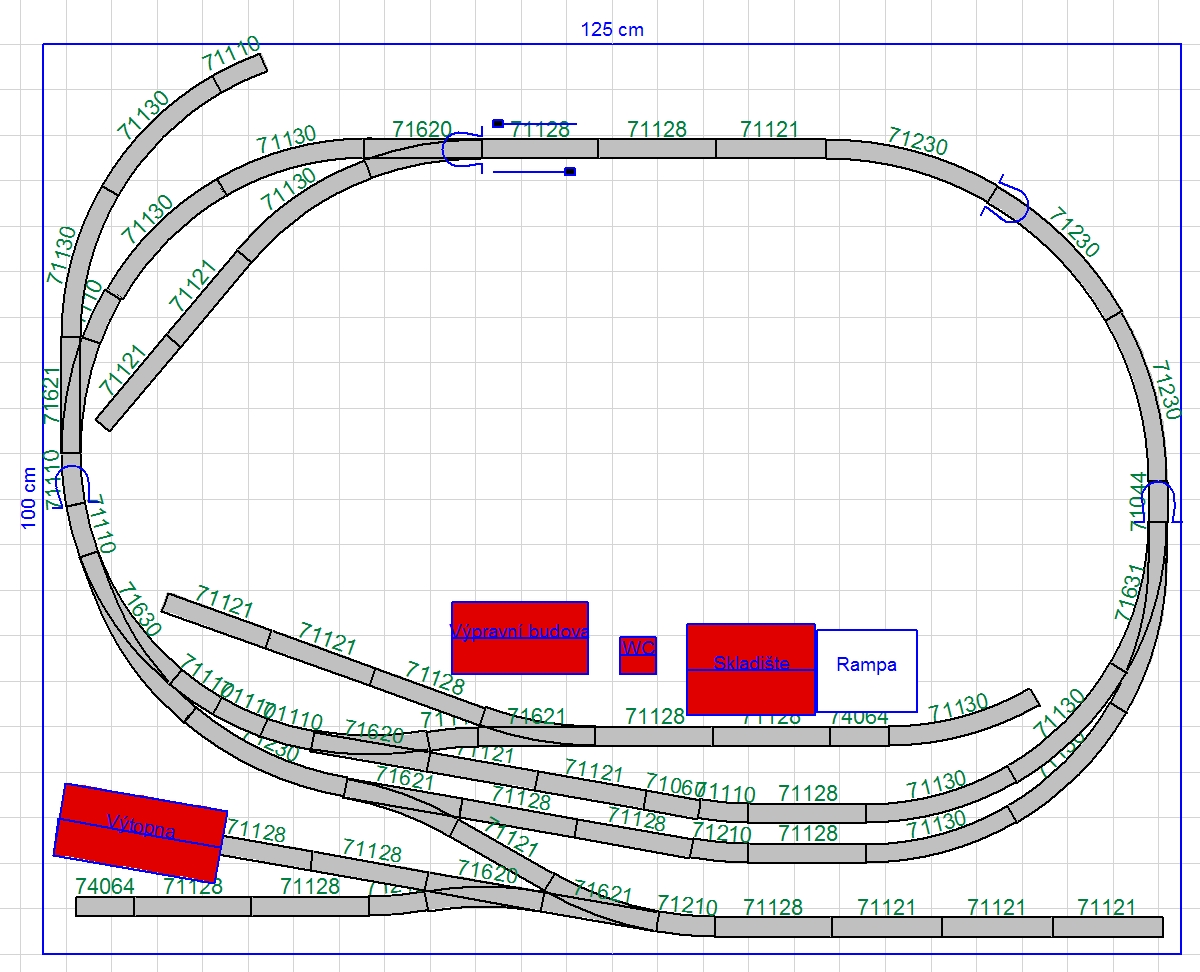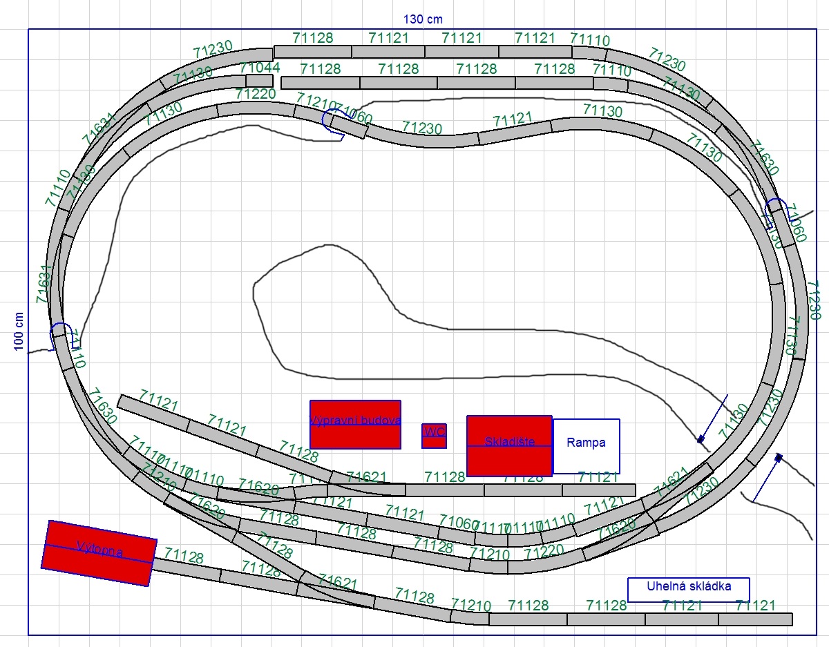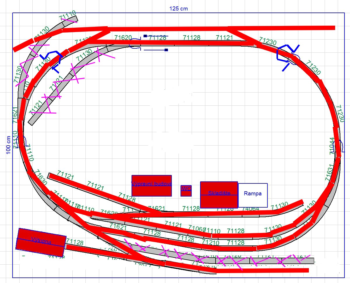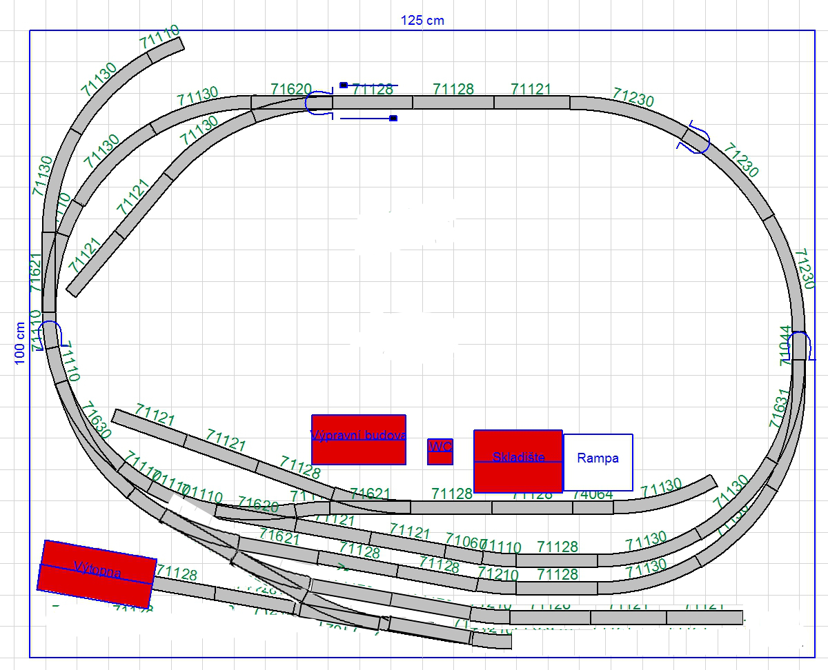 hopeter píše:Tohle máš ale prakticky bez SN... Nebylo by lepší posunout obě boční obloukové výhybky nahoru a schovat obě horní koleje? Získal bys kousky volné tratě a mohl ve skryťáku posunovat a střídat soupravy. Pro logiku kruhu je taky potřeba delší šturcy ( na délku soupravy).