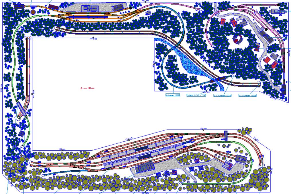 Velký projekt... No já bych popřemýšlel o skrytém. Takto budou moct jezdit vlaky dokola. Co to udělat jako falešnou dvojkolejku. Na tom modrém okruhu bych přidal nějaké skryté nádraží. Jak vycházejí délky staničních kolejí ve stanicích?