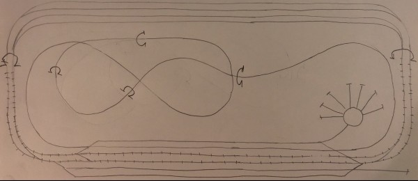 3) nejdelší okruh bude mít vzadu dvě (možná tři) koleje skrytého nadraží (miluji dlouhé nákladní vlaky, zejména “jednodruhové” (např. patnáct kotlů), čili to bude základem provozu