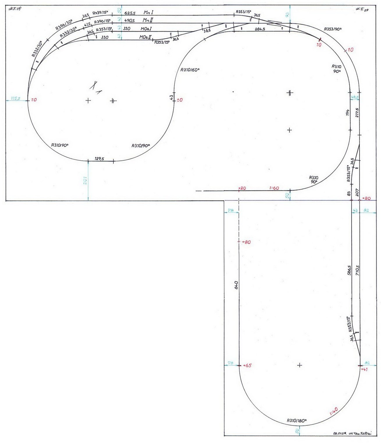 1.Plán má v skryťáku na dvojkoľajke pri vnútornej koľaji v zákrute na vstupe do stanice parameter R 310/90 a neviem, či som to správne pochopil, ale 90 stupňov je pravý uhol a tu to vyzerá na trošku menší asi 60.