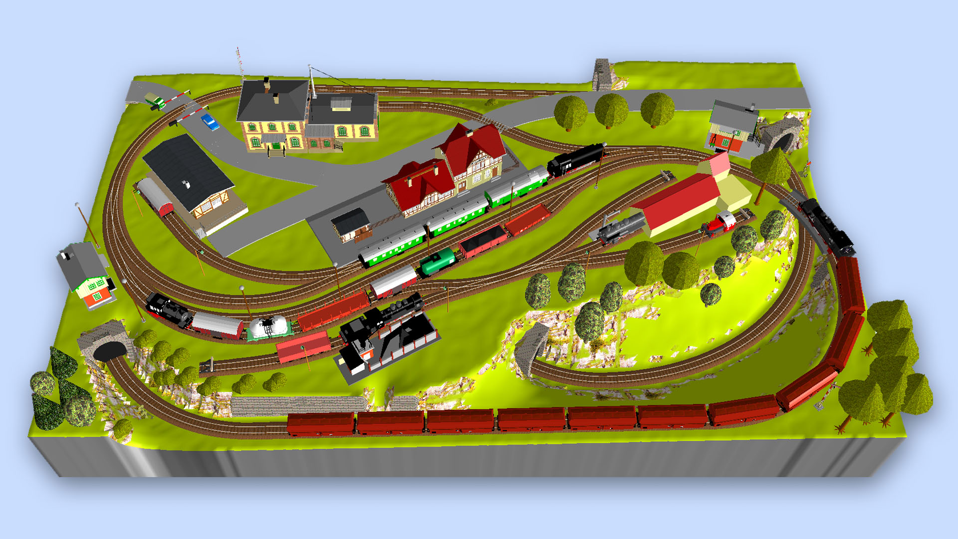 Jirkátor píše:Já nevím, je to, jak sám projektant a stavitel uvádí, hračkovitější kolejiště a ta motanice kolejí (nic proti tomu) sama o sobě postrádá logiku a tak řešit, kudy odvést vodu, aby netekla do tunelu, mi přijde přehnané. Pokud to tedy nebude stát venku, kde by na to mohlo skutečně pršet.Spíš bych se zabýval tím, jak vyjdou sklony tratě, mně ta stoupání připadají docela velká, ale je to jen odhad.