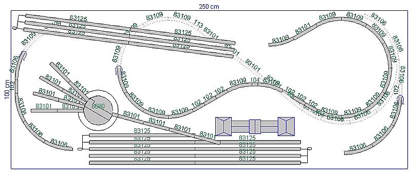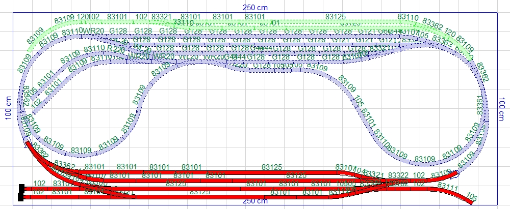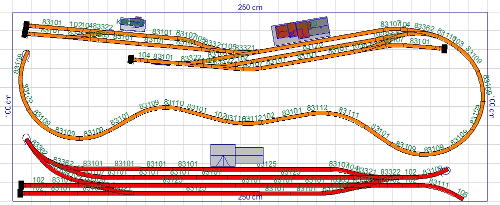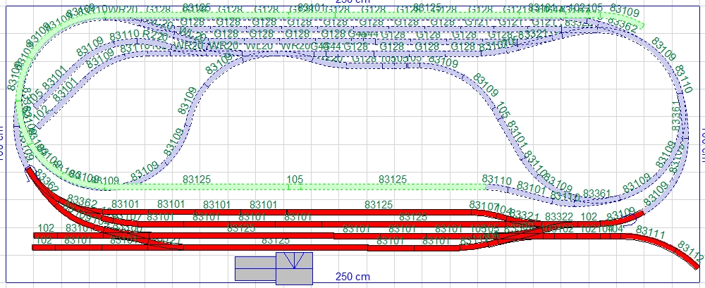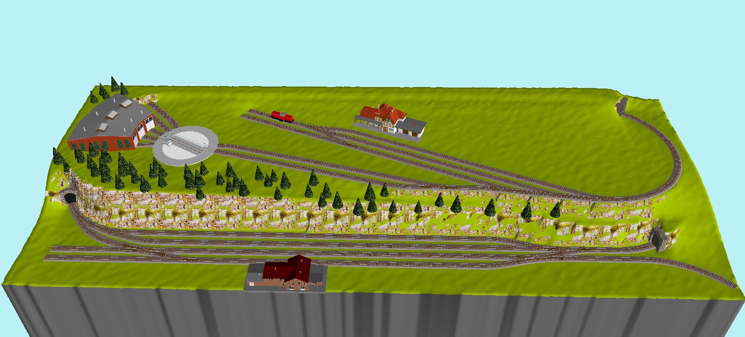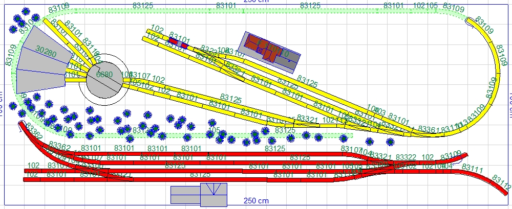 Jinak k tvému kolejišti. Myslím si, že největší slabinou tvého návrhu je velmi krátká viditelná trať. Původně jsem to měl navrženo podobně jako ty. Naštěstí díky Milanovi Ferdiánovi a jeho návrhu jsem dospěl k jiné podobě uspořádání tratě. Ono totiž pozorovat lokálku, jak se šplhá do koncové staničky je stejně krásné, jako šibovat s vlaky v nádraží. Zkusil bych to ještě nějak pozměnit. Škoda, že jsi neuvedl, jak plánuješ skrytou část, zda plánuješ jedno nebo více pater a zda tam máš v plánu vratné smyčky nebo ne.