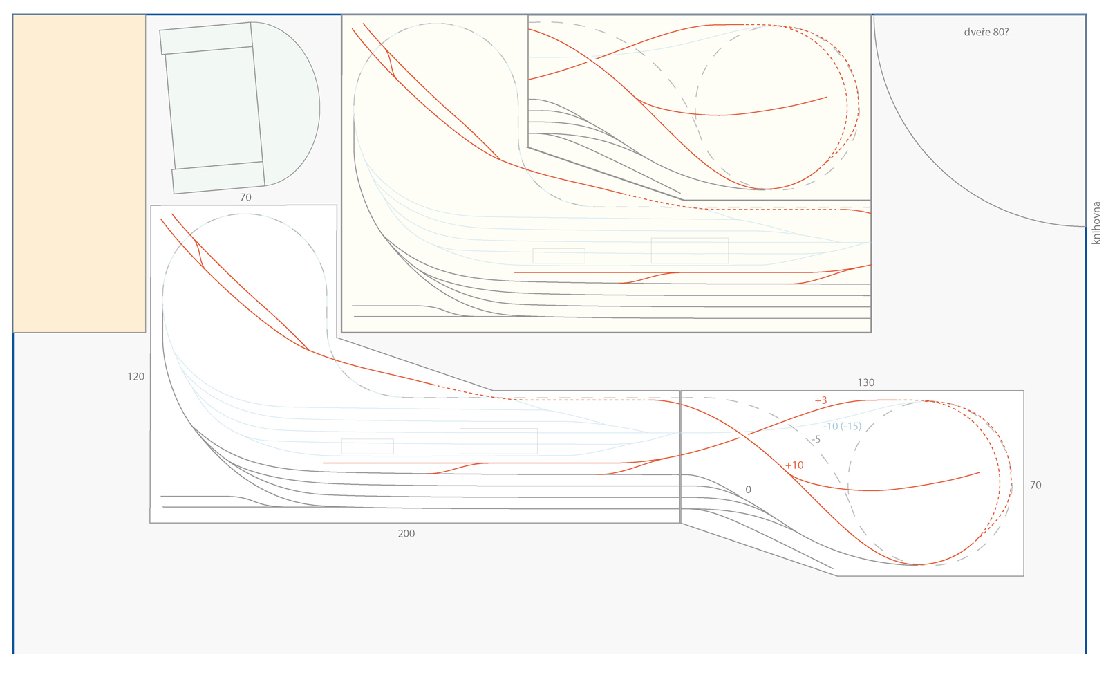 Ještě pozor, uvazujes li dvě smyčky, budeš muset sjet ještě o patro níž, kolejiště pak bude vcelku vysoké na to, aby se vešlo pod postel. Zkus si to nakreslit např. Nějakém programu (wintrack, SCARM... L