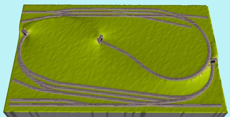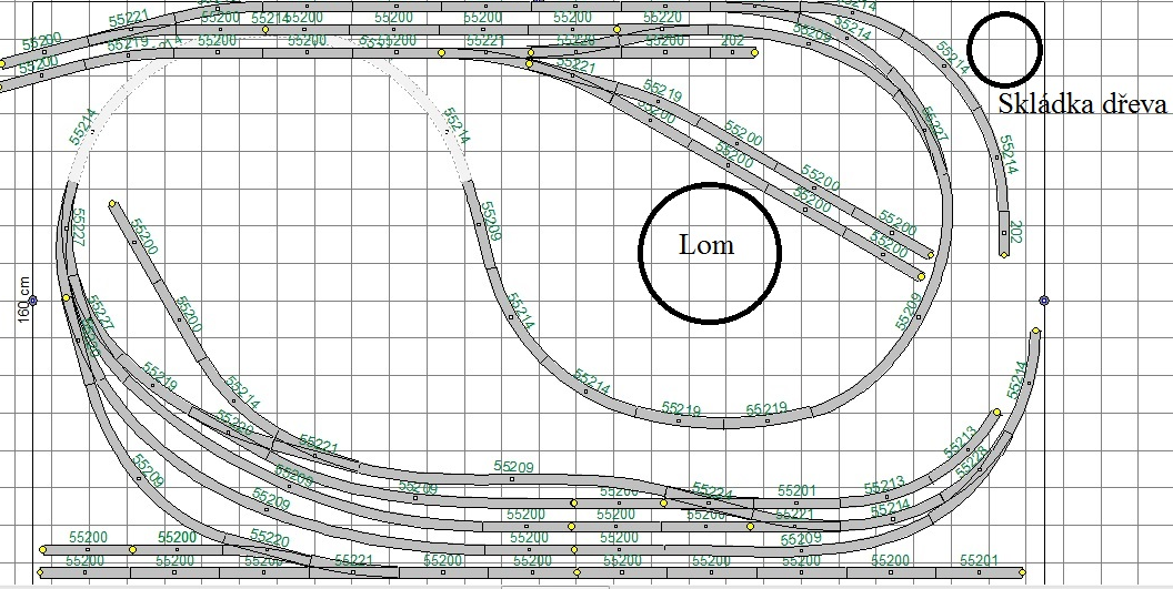 Jinak se to může zhodnotit jen tak, že ti na prvním nesedí kvůli flexi kolejím ( není od věci zhlaví dělat pomocí standartního kolejiva aby jsi viděl líp jak to vychází když dodržíš standartní osové vzdálenosti kolejí ) místy osové vzdálenosti ve stanici což ti může nejen opticky zkrátit využitelnou délku kolejí, že některé vlečky či co které kusé koleje mají být mu nedávají moc smysl (třeba ta spodní pod průjezdným nádražím ), podobně jako lom uprostřed kolejiště kolem kterého jede trať dokola ( lom který potřebuje dvě koleje by musel být pomalu přes celý panel, pokud by to nebyl třeba hlubinný důl a i ten by zasloužil víc prostoru ).