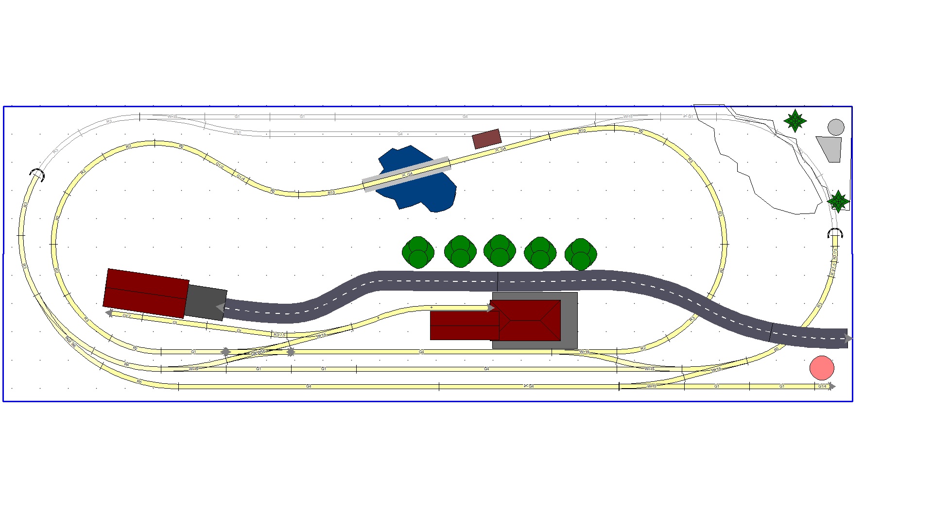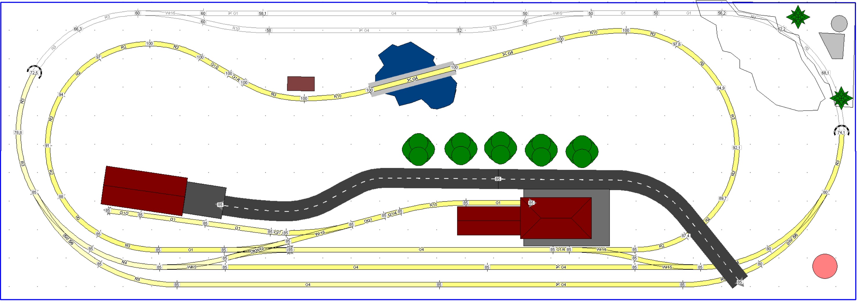 Nádraží bych se určitě nevzdával, je prima viditelné střídání vlaků. Určitě bych ale ten hlavní okruh udělal dvojkolejný, jednak mohou jet současně dva vlaky, navíc je míjení protijedoucích vlaků na dvojkolejce velmi efektní. Z nádraží by mohla vycházet lokálka končící koncovou stanicí se dvěma kolejemi s kolejovou spojku umožňující soupravy. Vypustil bych tu krátkou kusou kolej v pravém dolním rohu a raději prodloužil staniční kolej obloukovou výhybkou stejně jako v protějším zhlaví.
