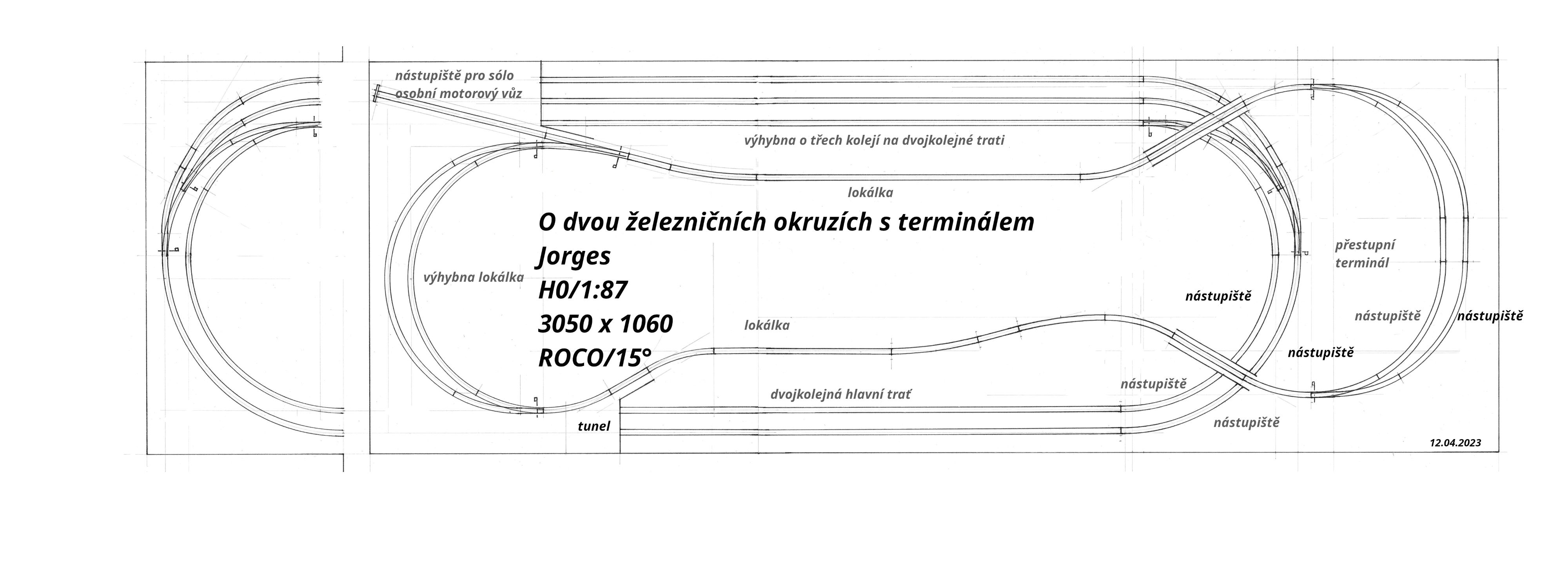 Ve viditelné stanici jsou doplněny tečkovaně koleje, které nejsou nutné. Ty jsou pouze pro případ, že by Jorges časem přišel na chuť posunu nebo chtěl tu a tam odstavit nějaký ten vůz.