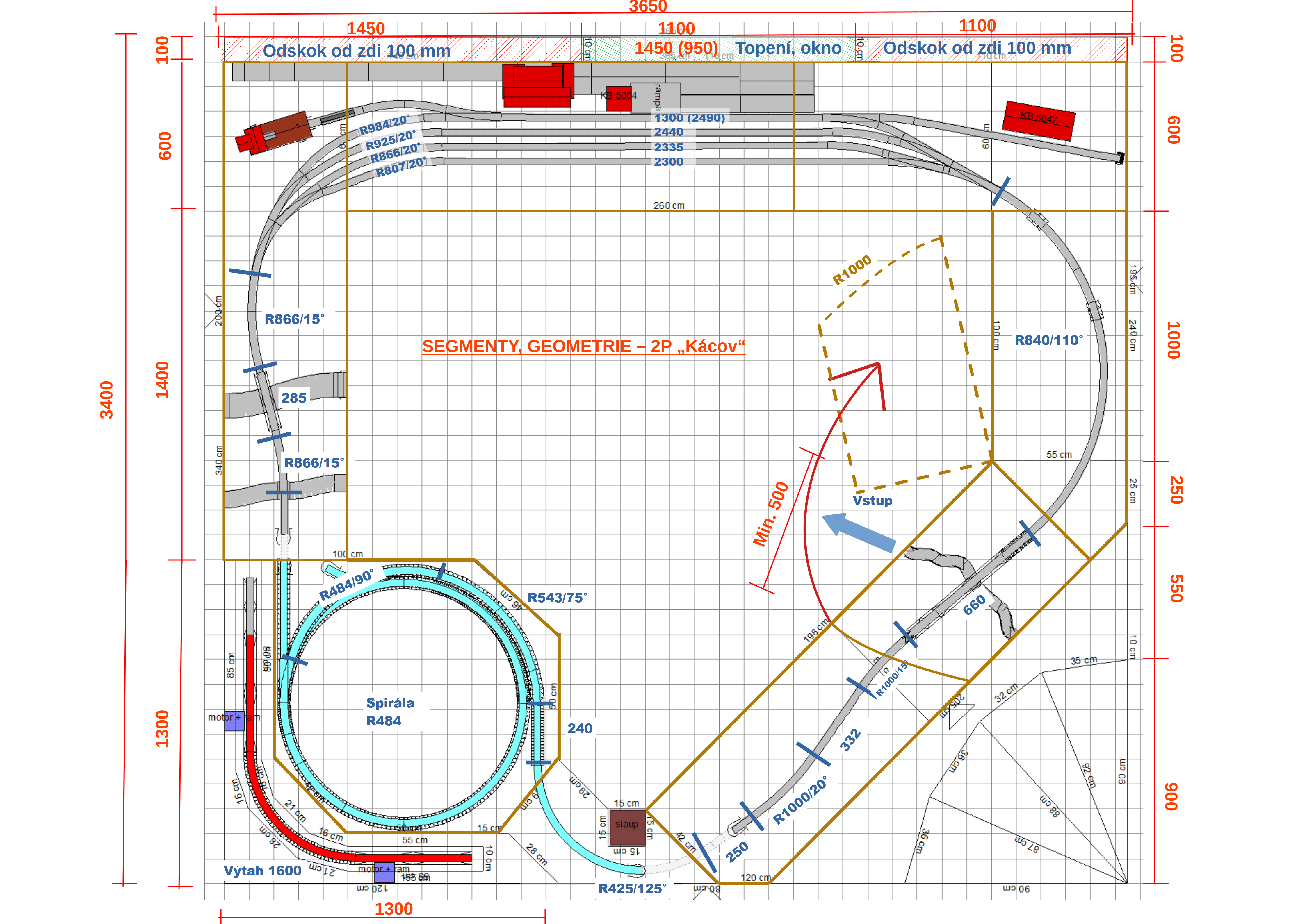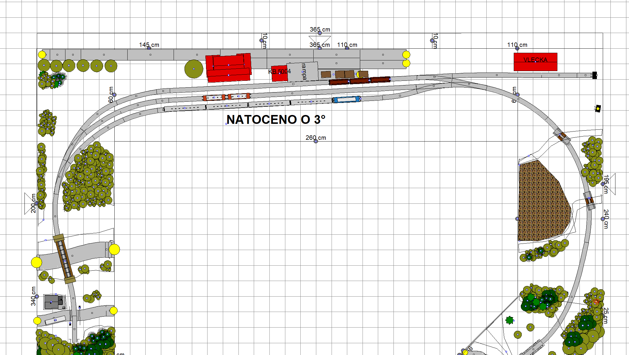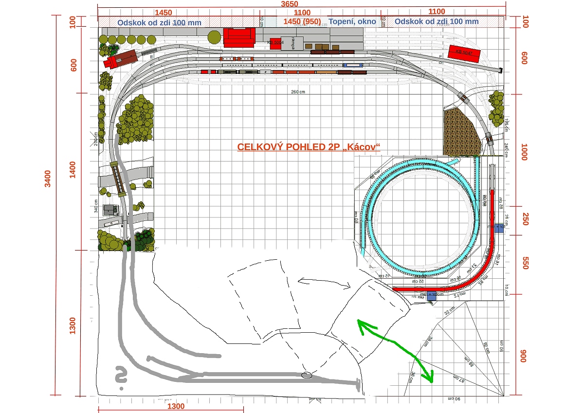Před dvěma lety jsem prodal vše TT, začal s H0 a s plánem nového kolejiště. Nápadů bylo mnoho, včetně nesmyslných. Přes různé varianty jsem se aktuálně dopracoval k tomuto: