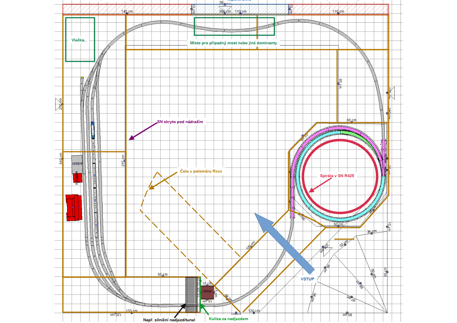 Toto je můj několikátý návrh, se kterým jsem ale došel nejdál. Vím, že velikost místnosti není pro H0 ideální, proto koncept více pater. Nejsem drážní odborník a nikdy jsem na dráze nepracoval, jsem čistě modelář a nadšenec. Snažím se co nejvíce držet reality, ale chci si ji tvořit podle sebe a mít ji jako inspiraci. Projekt zde zveřejňuji hlavně proto, protože SI CHCI NECHAT PORADIT
