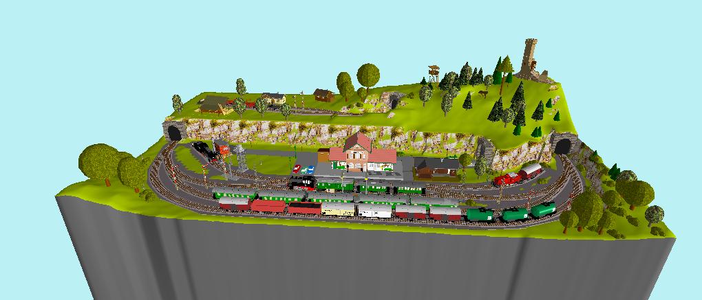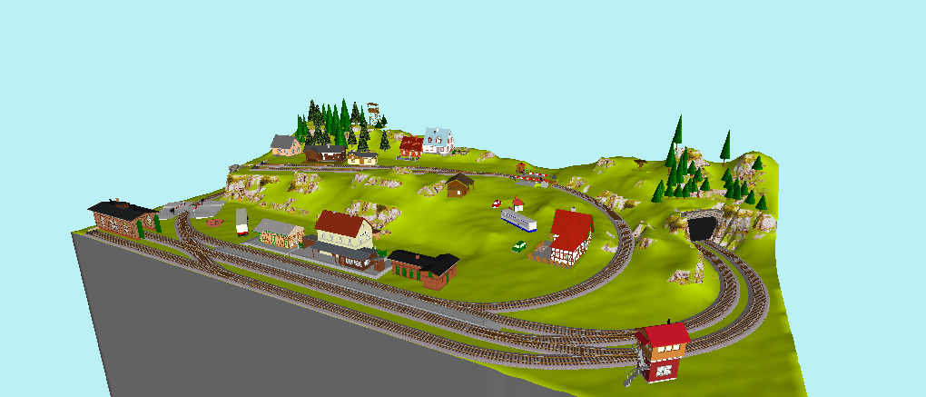NÁDRAŽÍ (zatím nemá název) leží na trati mezi MĚSTEM_A a MĚSTEM_B (nejsou na kolejišti a taky zatím nemají název). Z MĚSTA_A vede do NÁDRAŽÍ dvoukolejná trať (původně tam být neměla, ale nějak jsem si ji zkusil a zalíbila se mi, tak už zůstala). Některé vlaky zde končí a vrací se zpět, některé pokračují po jednokolejné trati dále do MĚSTA_B. Z nádraží ještě vede samostatná lokálka do nedaleké VESNICE (beznázvých míst je tady dost, že? :D )