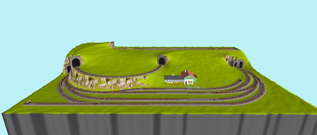 Alternativa s menším nádražím pro zmenšení panelu. Jedna kolej padla za vlast. Tedy... za větší skladnost kolejiště. Zhlaví není tak velké a nezačíná hned za tunelem (tunely se dají posunout ještě více dozadu).
