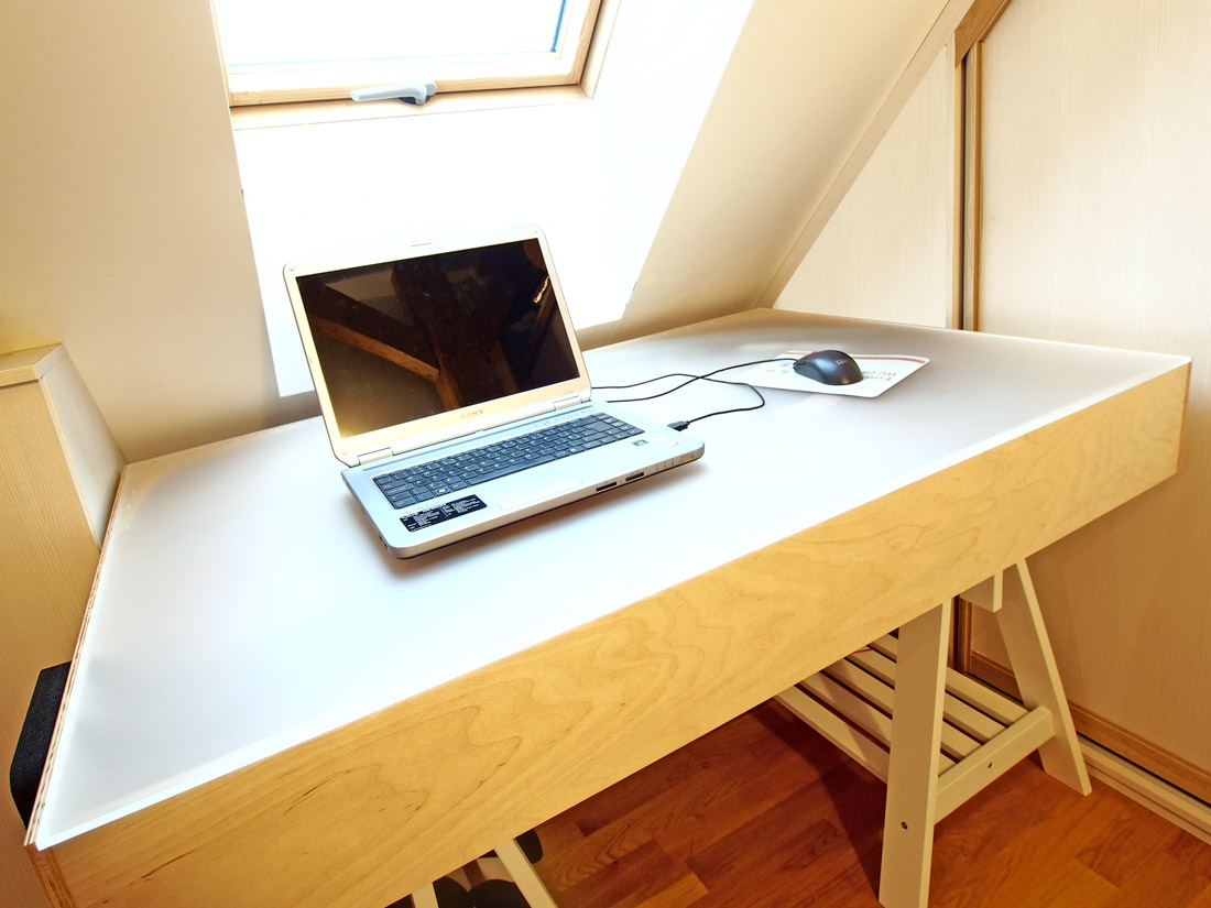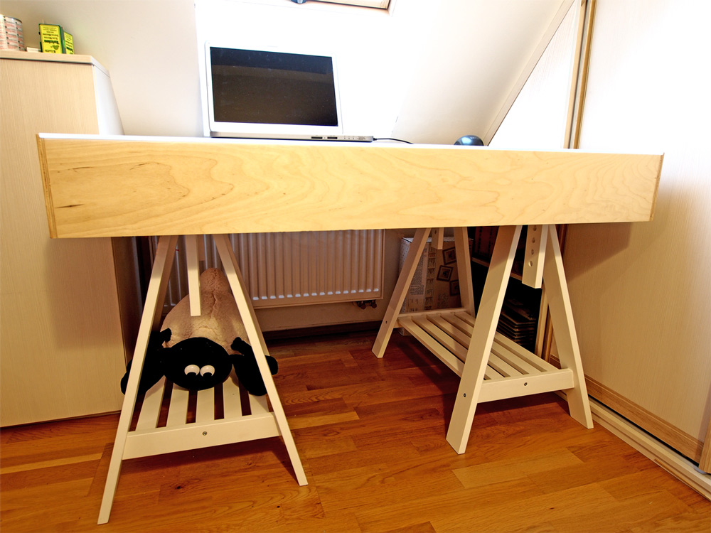 Ikdyž je Štědrý den až zítra, já už jsem si dárek pro sebe splnil :) - vlastní vysněný stůl do "dílny" mám téměř hotový. Naklápěcí, multifunkční...člověk by ani neřekl, že je za pár desítek tisíc, co? :wink: Žena je též designem spokojena a už má na něm počítač :wink: