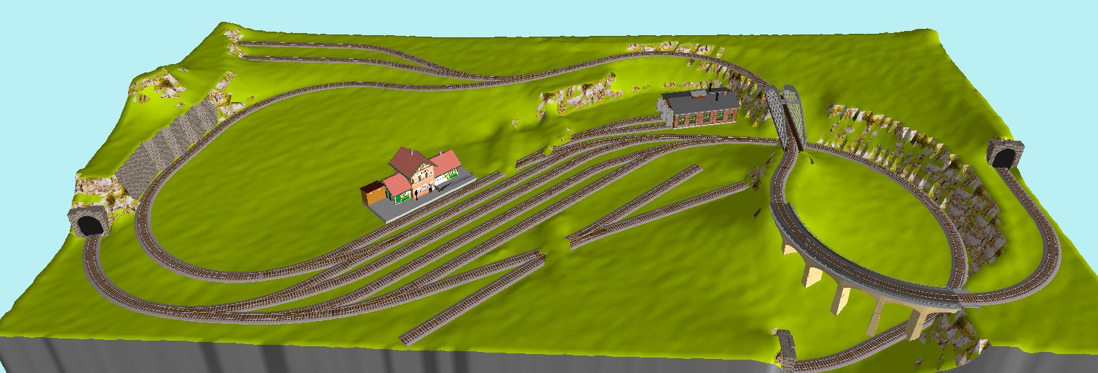 Ale zpet k navrhu. Mam z dob minulych 7 lokomotiv a nespocet vagonu od Berlinen Bahnen rad bych je zde provozoval. Tenkrat vysplhali mnohem vice nez 4cm/m a tocili bez problemu jine polomery, tak snad ten horejsi okruh nebude zas takovy problem pro motoracek, nebo paru o 3 vagoncich, nebo nakladacek do mistni vlecky. Jak jsem psal, stoupani jsem zredukoval na 3, kdyz jsem sklesal so SN pomoci spiral. Delka koleji v nadrazi byla okomentovana vyse a s tim problem nemam. Anglican ve vlecce mi take nevadi. Holt kdyz je malo mista co se da delat. Jedine s cim mam problem je slozitost SN, nevim zda-li se tam dostanu, sice to bude pristupne ze vsech strana i ze spodu (kde nebudou koleje), ale nikdy jsem ve skrytaku nic nenahazoval, tak nevim. A co se tyce el. zapojeni, s tim problem nemam, neprijde mi to slozite, mam to vymyslene na 3 useky: leva cast, prava cast a vrsek, tedy 3 trafa.