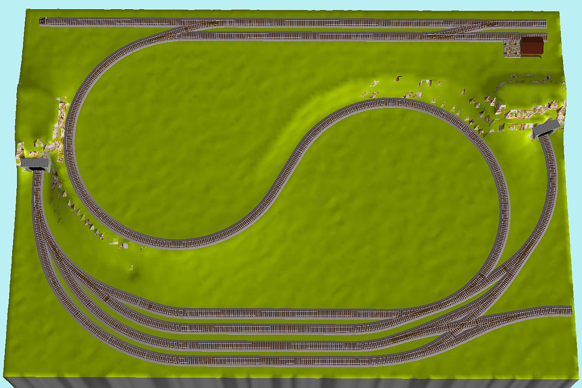 Pro další rozšíření bych plánoval náhradu stávající tratě do tunelu vpravo jinou trasou. Otázka je zda v při podobných plánech neuděklat pouze jednu smyčku (na tunelu vlevo) a zdruhé strany nechat prozatimní průjezd po oválu).