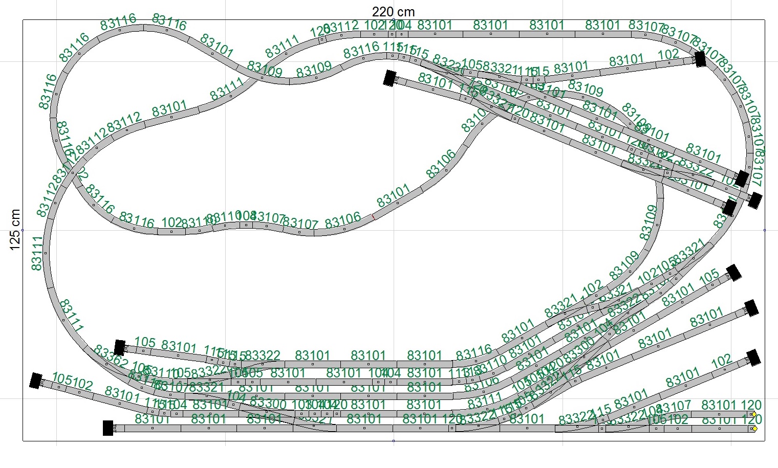 Spíš škoda, že to je skládaný z EW1.. Kdyby to mohlo být z EW2, tak by to vypadalo mnohem lépe - a jak vidno, v tomto případě by se ani moc nezkrátily délky kolejí, ve většině případů tu je použito ew1 + toho prcka pro dorovnání roztečí kolejí..