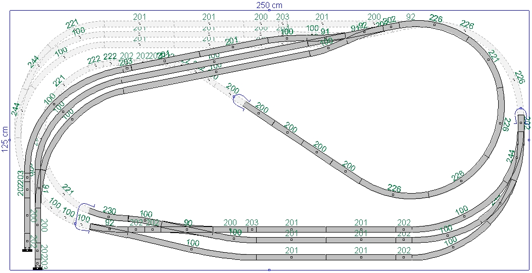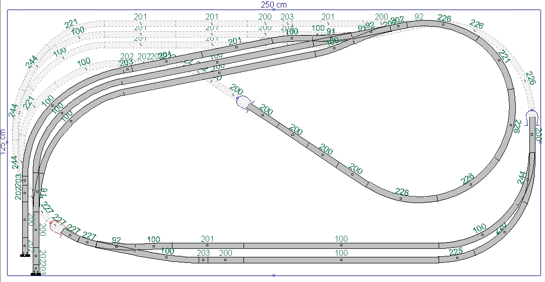 Další věc je trakce - pokud i když nerealisticky, ale přece jen podlehneš kouzlu prohnat po kolejišti delší páru (Němka třeba) či elektriku, tak si předem vyzkoušel že ti dlouhá pára na tak malých poloměrech nevykolejí (mě na peco veksli 244 a následným oblouku sem tam vyběhne přední běhoun u BR01.5 a ten pak na další výhybce vykolejí celou mašinu - takže ve skrytáku fakt paráda... Němku si budu muset někde pučit, svoje patinovaný jsem bohužel už dávno prodal a kupovat na blind novou raděj nebudu). U elektrický mašiny musíš mít dole pantograf nebo ho fixovat tenkým vlascem v poloze kdy neškobrjne o dráty nebo přestavníky co trčí "ze stropu" tunelu...
