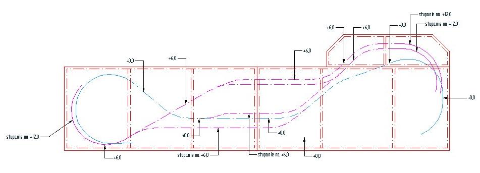 Spodna cast este nie je doriesena, zaskocila ma dostupnost oblukovych vyhybiek Kuehn. V spodnej casti by malo byt skryte nadrazie aspon s 3 kolajami. Ale geometria kuehn oblukovych vyhybiek mi dovoli dat 4 kolaj do skytaku.