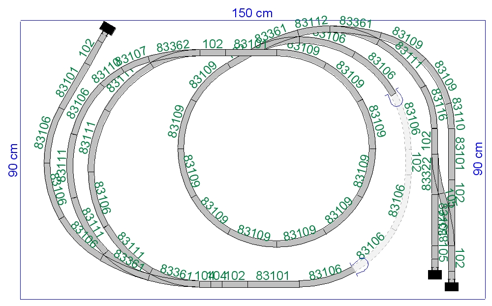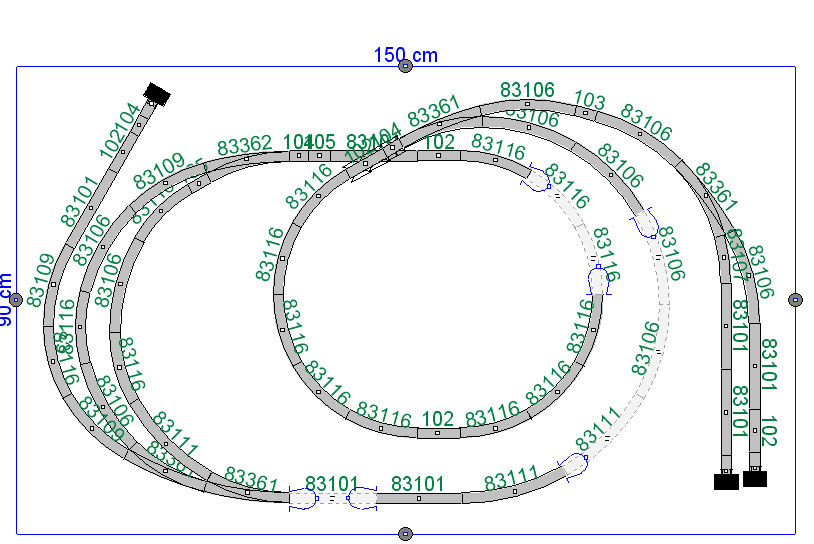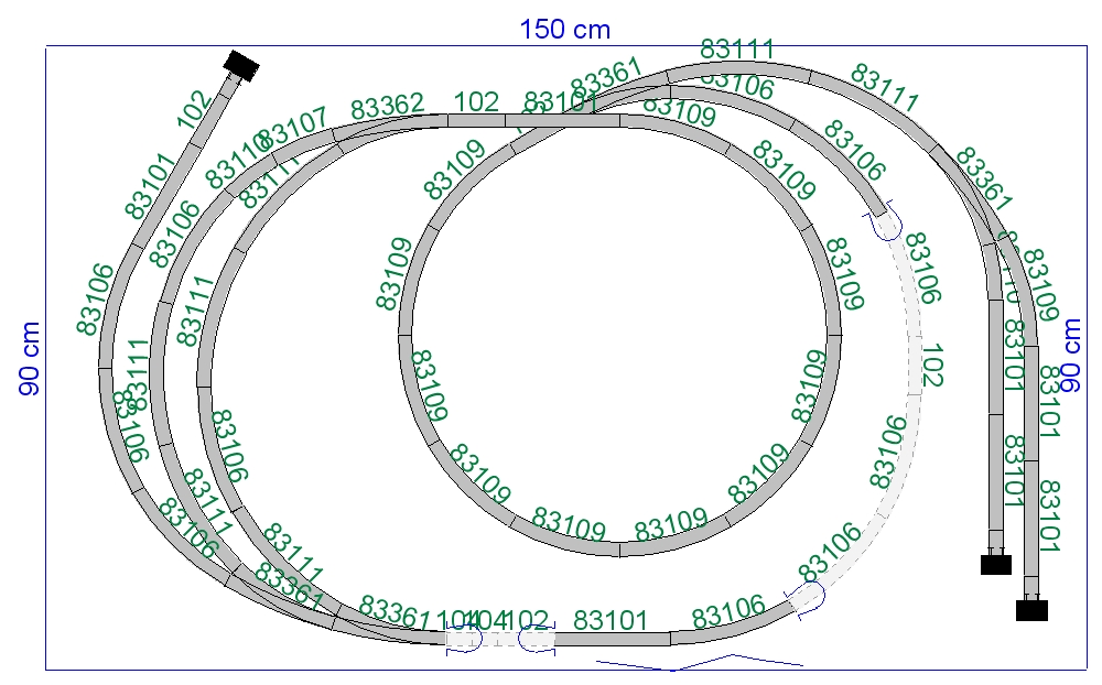 - nejsem si jist průjezdností vnitřního kruhu spirály z kolejiva 267mm, přijde mi to hodně ostrý.