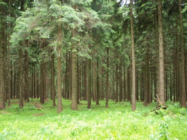 místa podobná šumavským hvozdům kde je skoro souvislý travnatý podrost se najdou i jinde, třeba i na Jizerkách, i když na foto je v podrostu dost kapradí