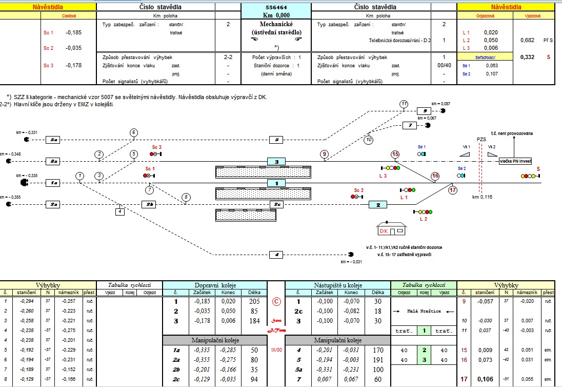 Jednoramenné vjezdové návěstidlo s předvěstí, mechanické závory, ruční výhybky na klíče obsluhované vyhybkářem. V roce 1976 zřízeno mechanické zab. zař. se světelnými návěstidly s vazbou na pzz, dvě krajní vjezdové výhybky osazeny elektromotorickými přestavníky obsluhovanými vypravčím ze stavědlového přístroje, ostatní výhybky ručně výhybkářem, v případě že měly zámek, byly u nich zřízeny venkovní elmag. zámky. V stavědlovém přístroji zároveň byly pomocí zástrčkových klíčů drženy klíče od nákladiště Stará Huť, a montážní základny v km 2,6.