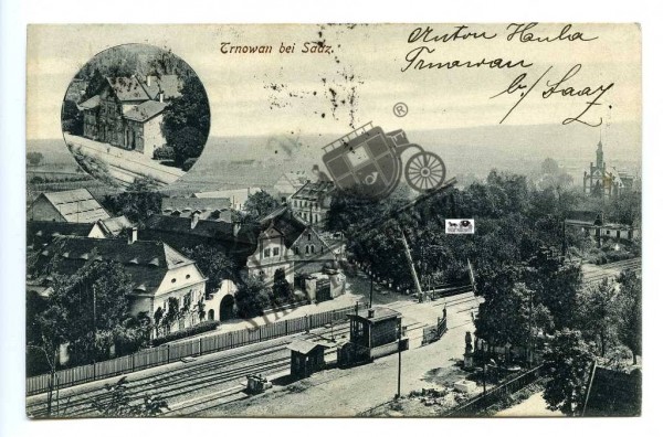 Jarda H. píše:To hank61 : ještě k Trnovanům, historická pohlednice - pohled na "pravou" část stanice (příjezd od Prahy, původní dvojkolejný přejezd), staniční budova je směrem doleva, za kolejema :D