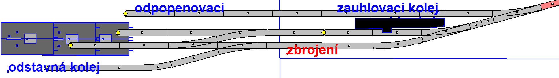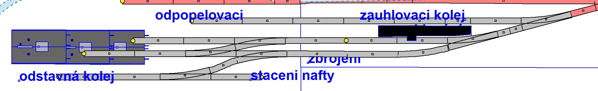 U navrženého depa bych udělal ještě jednu jámu (dnes rozdělena 1/2 na popel a 1/2 odkalování) na koleji vpravo od zauhlování ještě před „již prázdné skládky”.