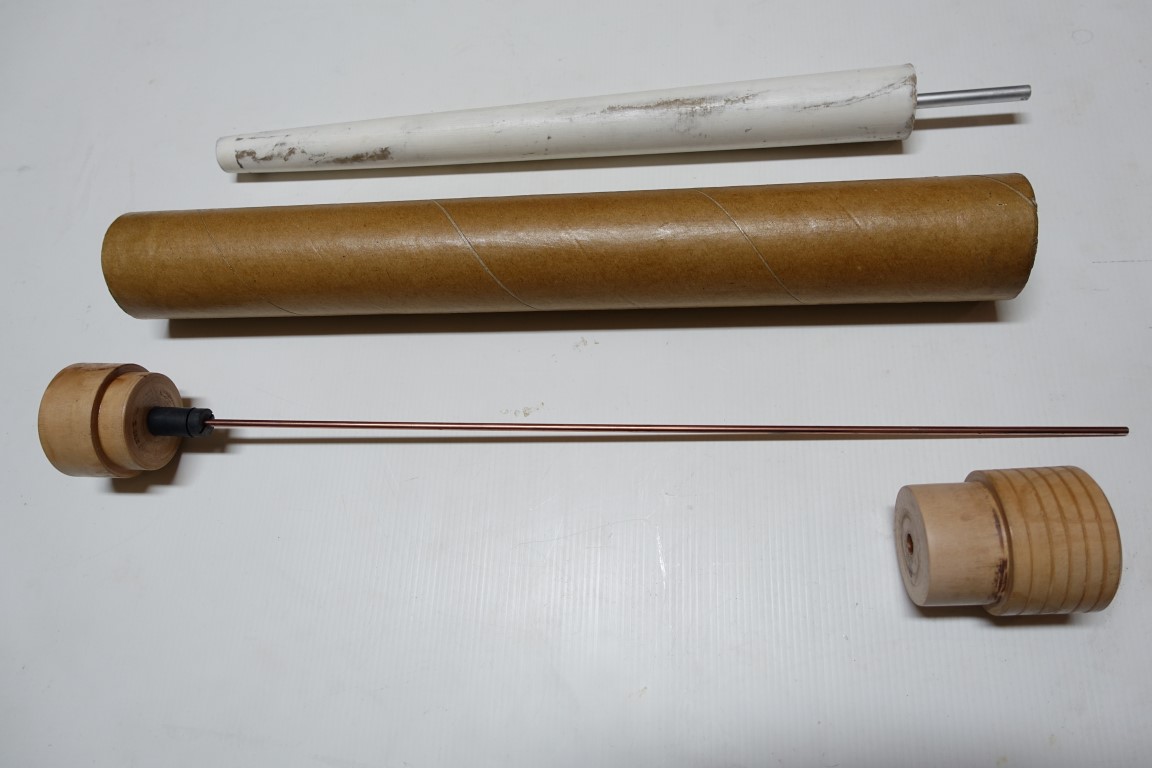Tak a je hotovo. Celý jsem to spíchl za jedno odpoledne i s prosycením kartonové trubky nitrolakem. Stejně by se dala použít i plastová odpadní trubka, ke které lze koupit i zátky, takže by odpadlo soustružení. Jen by se muselo přesněji vrtat.