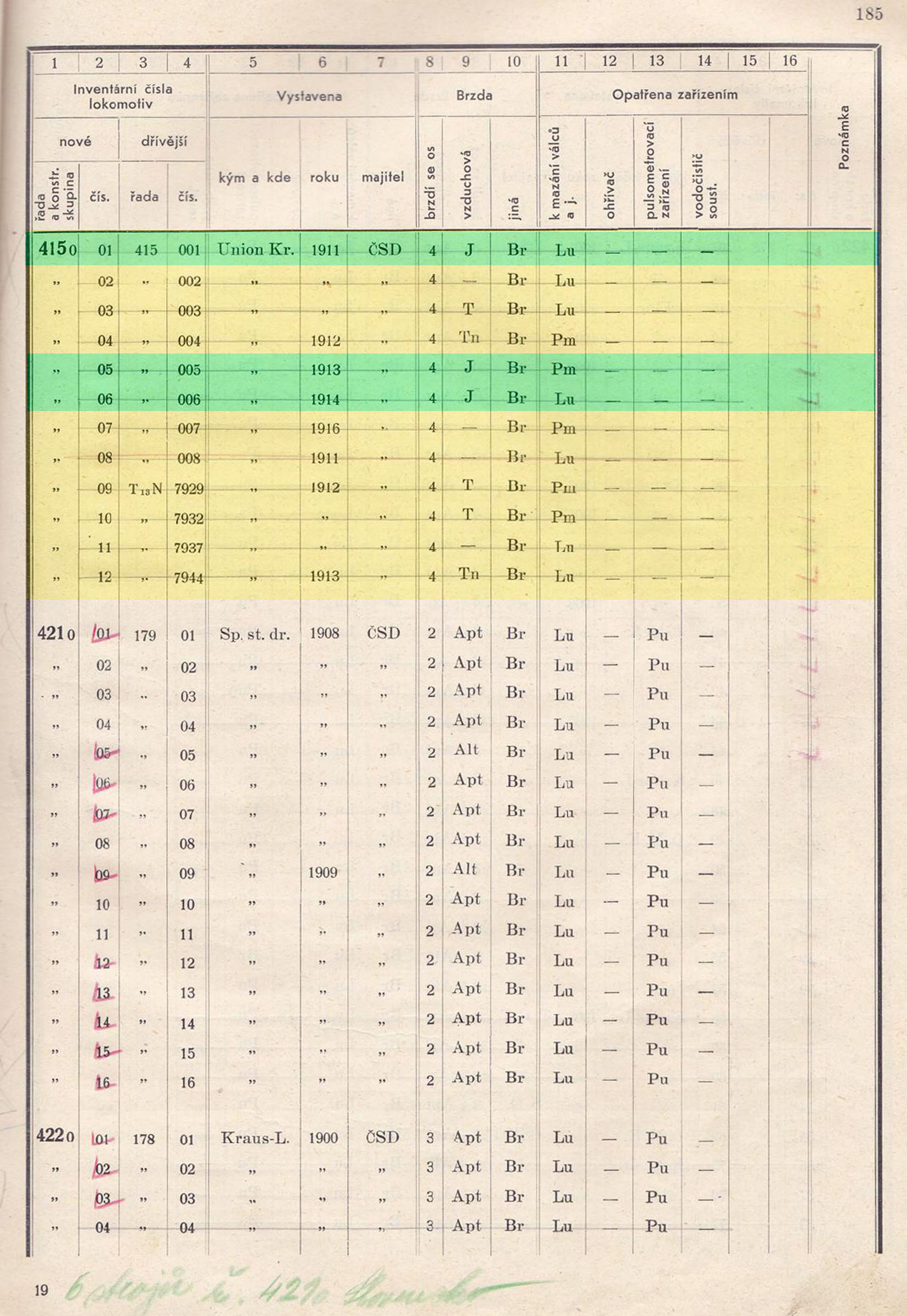 U ČSD se lokomotivy 415.0 sjednocovaly, ale až tak úplně jednotně. Byly určeny jen pro posun, k čemuž se výborně hodily. Až na tu ruční brzdu závažovou. Ta jim byla měněna na ruční brzdu vřetenovou (na straně topiče) už při hlavních opravách, což lépe vyhovovalo při posunu. Přítomnost parní brzdy nebyla roku 1919 vůbec zmíněna. Ale ta sací mohla být německé konstrukce fy. Körting. Pro ni zas nebyly u nás náhradní díly, takže nelze vyloučit úpravu na ejektor Hardy, který byl dostupný na zrušených lokomotivách - nebo při demontáži sací brzdy a náhrady tlakovou brzdou u osobních-rychlíkových lokomotiv (1925-1931).