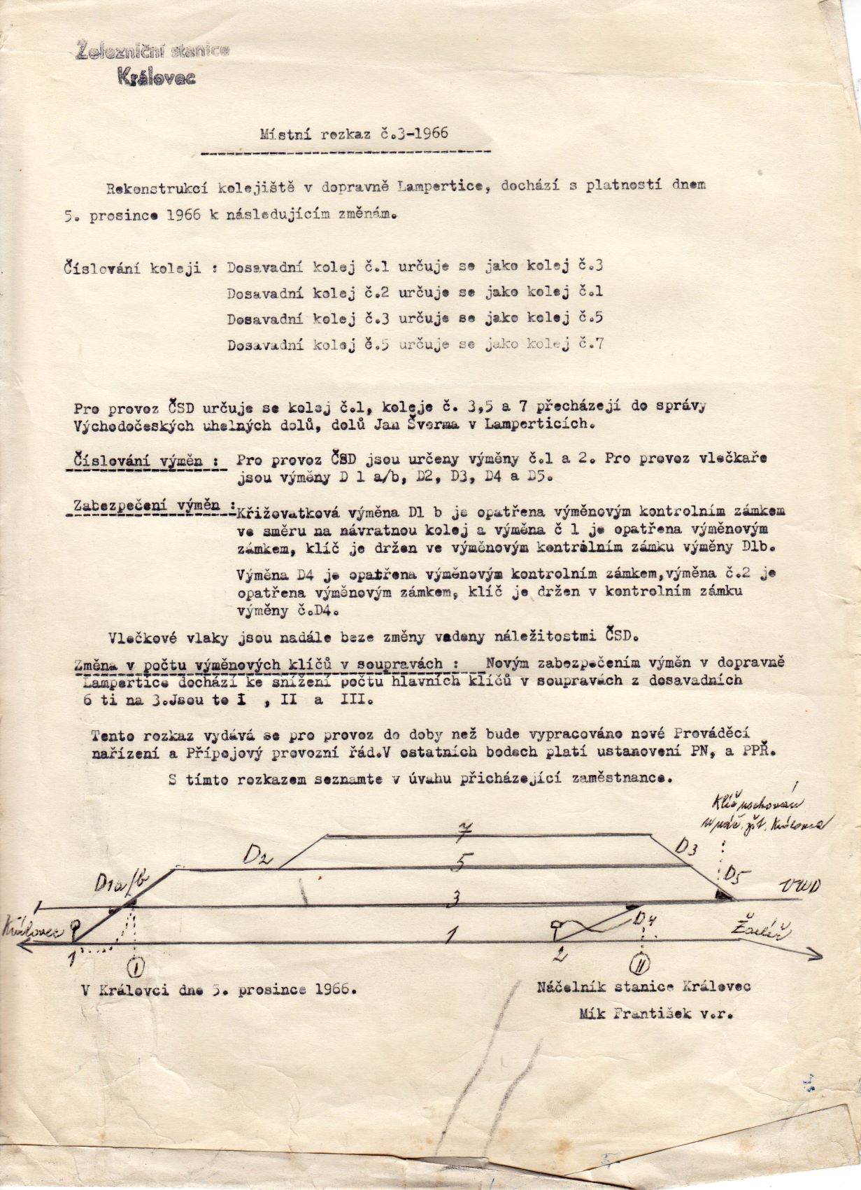 Jediné, co by v tom mohlo udělat jasno, by byly historické dokumenty: PND3 pro dirigovanou trať Královec - Žacléř a PPŘ vlečky Důl Jan Šverma.