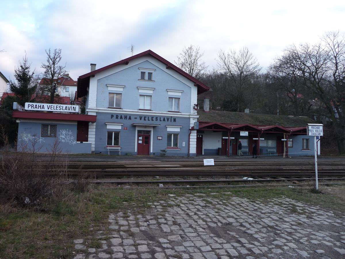 Milan Ferdián: V citované publikaci je přímo Veleslavín a je to dobře, protože ta budova je jiná než všechny ty, které jsi tady vypsal. Otvovice jsou cca o 10 let starší a mají v přízemí okna i dveře klenuté, Zákolany, Černovice apod. mají jinak uspořádané dveře a okna, i když rozměrově ty budovy 1. třídy asi budou stejné (nekontroloval jsem). A na kraslické trati vypadaly zase ještě jinak (Svatava, Hřebeny). Ono to totiž bylo tak, že ty Zákolany apod. původně neměly staniční budovy vůbec, jen strážní domky, a přístavby formou pozměněných staveb staničních budov 1. třídy se doplňovaly až v 80. - 90. letech 19. stol., takže opravdu vypdají trochu jinak.