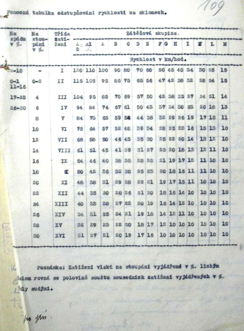 Zde tabulkové vysvětlivky z roku 1939 a 1942. Ovšem platné pro parní trakci.