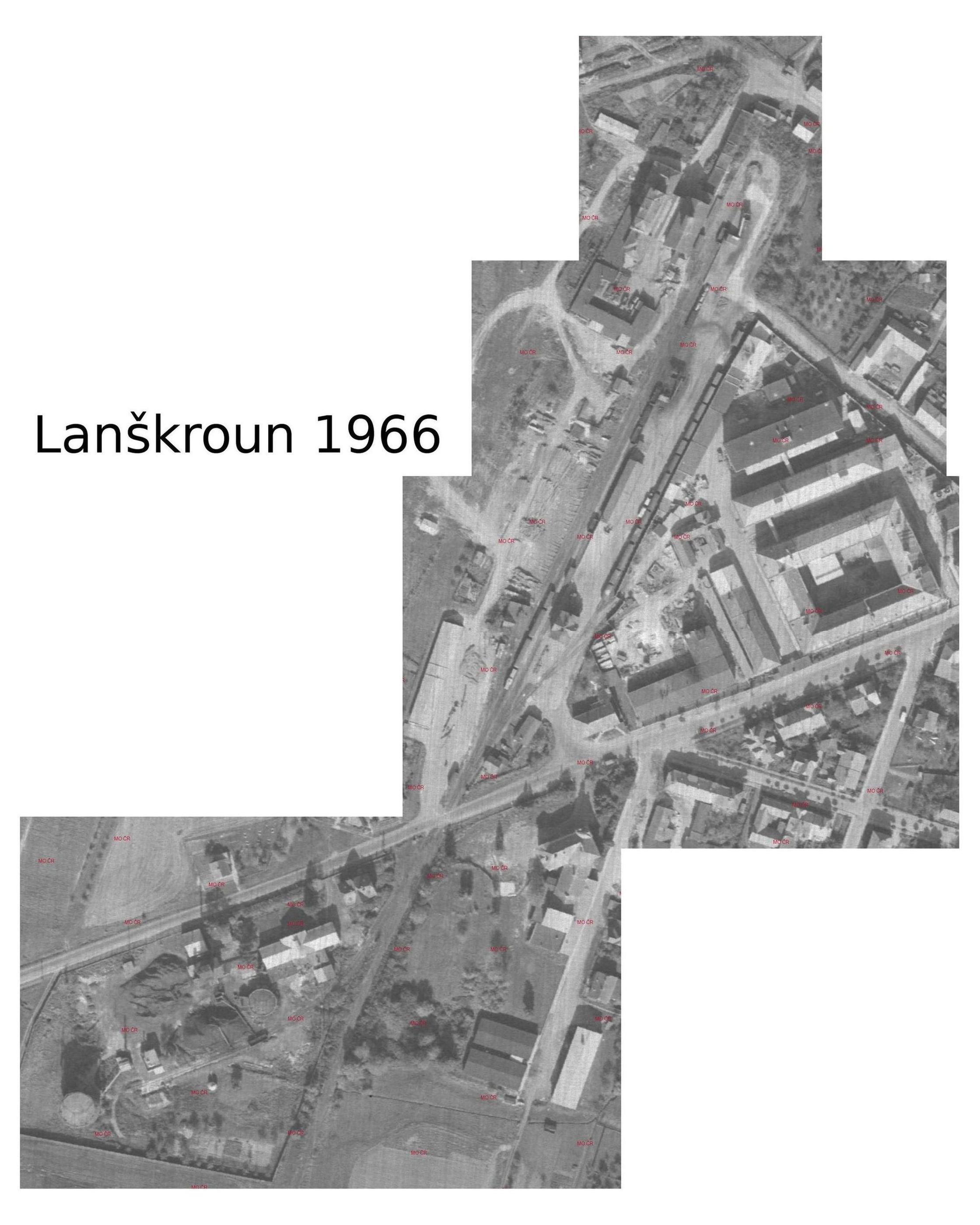 Na lms.cuzk.cz jsou od roku 2003 letecké snímky každé 3 roky (a dále hojně z 50. a 60. let). S trochou píle se z toho dá kolejové schéma vyzískat, případně lze zakoupit (není to drahé) letecký snímek ve vyšším rozlišení.