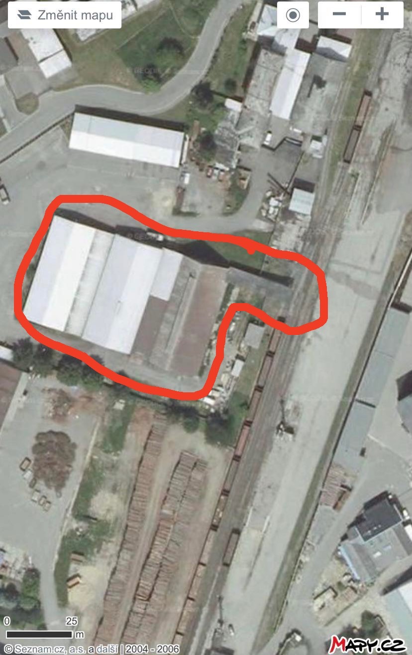 Další neznámou je pro mě objekt označen na fotce. Jedná se o jakýsi “spojovací tunel” vedoucí od 2. koleje směrem k velké hale viz. fotosnímek. Hala by měla patřit místnímu ACHP, avšak jaké je její využití? Pro vykládku materiálů (pytlovaná hnojiva apod. by asi byla vhodnější klasická rampa?).
