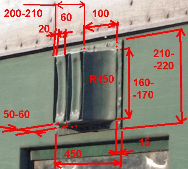 Tak jestli to bude stačit takto. Někde jsou míry dvě, protožr ne všechny větrače co jsem obhlíel byli naprosto stejné, takže tam je rozmezí co jsem zhruba naměřil. Některé byli trochu s horším lakem takže tam se i hůř měřilo, poloměr zaoblení je spíš odvozen od maněřených hodnot a obkreslení profilu jednoho větrače, takže to berte s rezervou... Ani jejich umístení není úplně stejné byť vše bylo na Rybácích, někde začínali už pod střechou jinde kousek pod ní, do značné míry je to dané dřevěnnou rámovou konstrukcí vozu, jestli je někde střecha přetažena níž jsem nezkoumal, navíc na posouzení bych se musel dostat zevnitř vozu k rámu což není vždy možné... Ale doufám že tak nahrubo to stačit bude... ;)