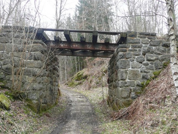 Ideální by byla fotka přímo tohoto konkrétního mostu z dob, kdy se po trati ještě jezdilo. Jedná se most přes lesní cestu na zrušené trati 144 za dopravnou Horní Slavkov zast. směrem na Loket. Před časem se stal "slavným" když z něj nějaká banda ukradla celou mostovku.