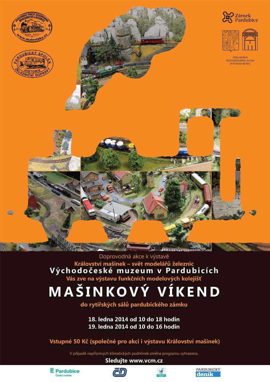 Ve dnech 18. a 19. ledna 2014 proběhne ve Východočeském muzeu v Pardubicích výstava modelových kolejišť "Mašinkový víkend" jako doprovodná akce k výstavě "Království mašinek - svět modelářů železnic".