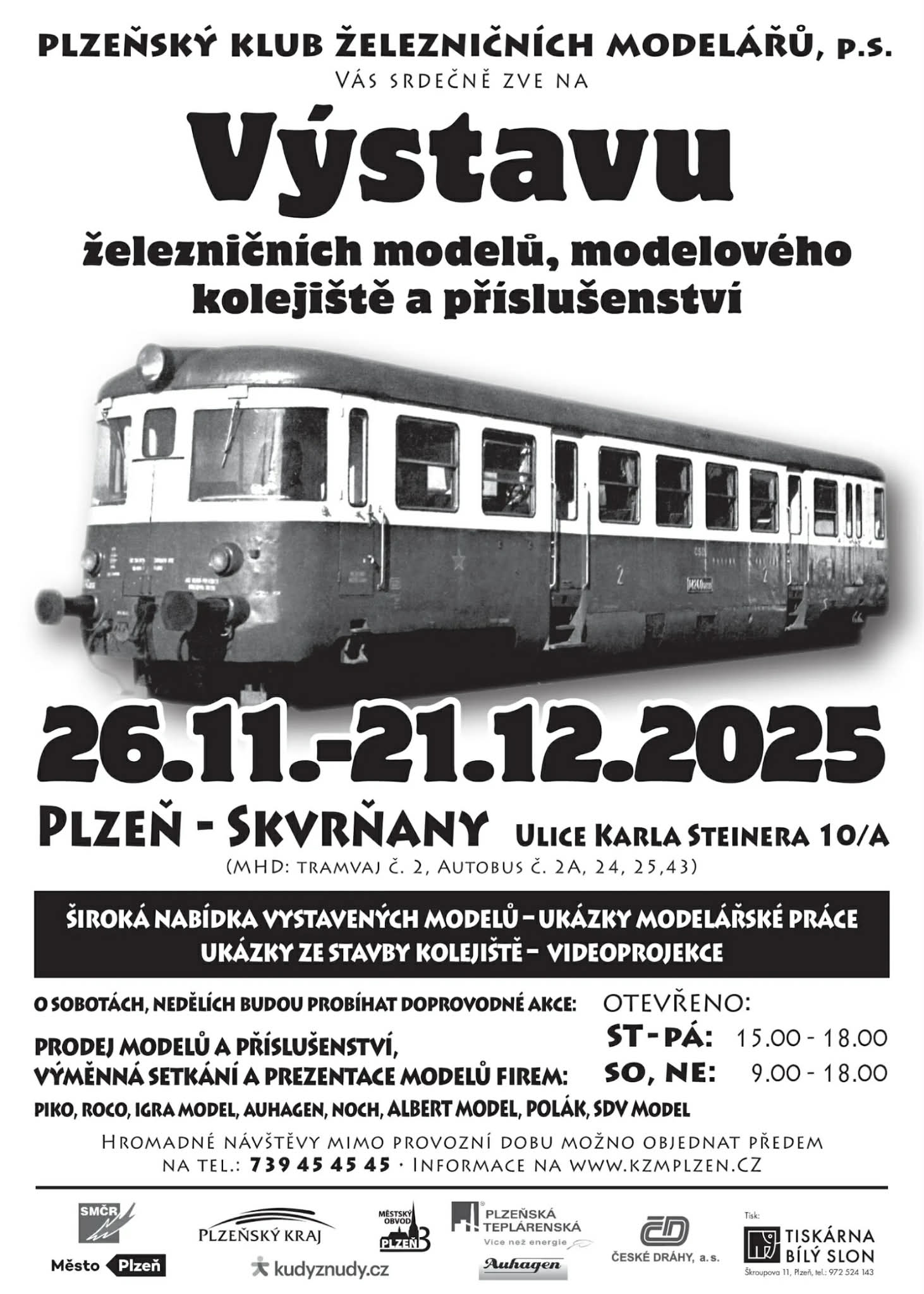 V Plzni Skvrňanech aktuálně probíhá tradiční výstava železničních modelářů a to od 26.11 do 21.12 2025.