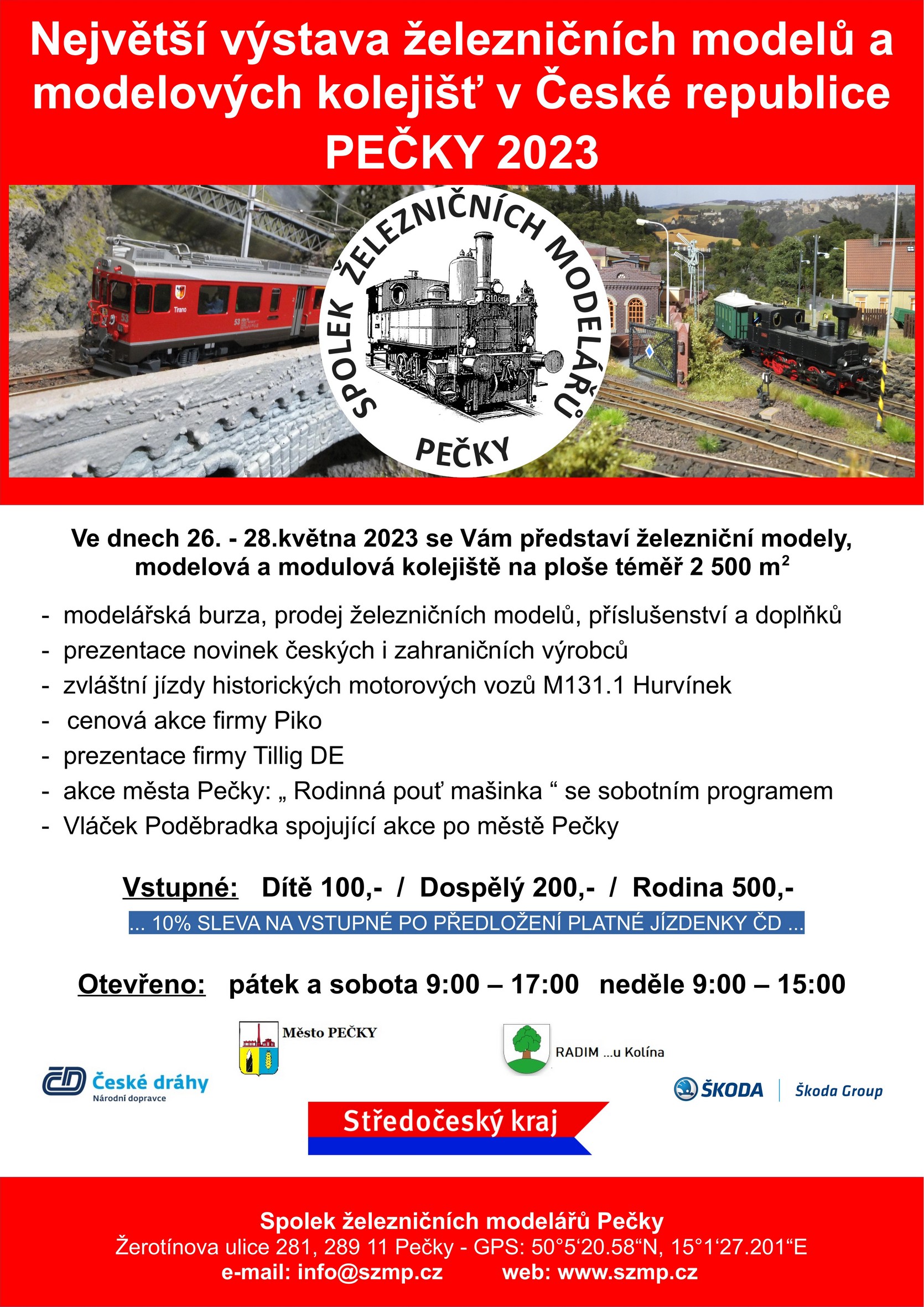 Velká výstava "Mašinka Pečky 2023" bude v klasickém termínu posledního květnového víkendu 26.-28.5.2022. Těšíme se na Vás