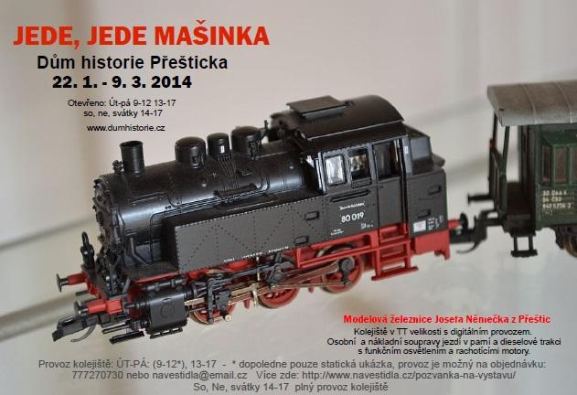 Chtěl bych touto cestou pozvat všechny zájemce o modelovou železnici na výstavu pod názvem Jede, jede mašinka. Výstava se konná v prostorách Domu historie Přešticka ve dnech od 22.1. do 9.3.2014.