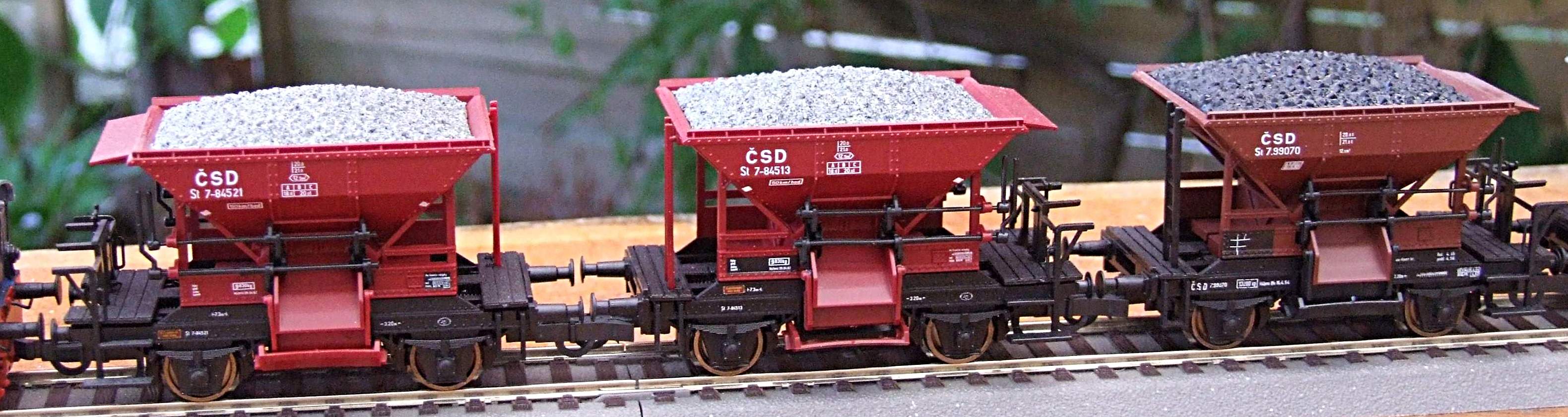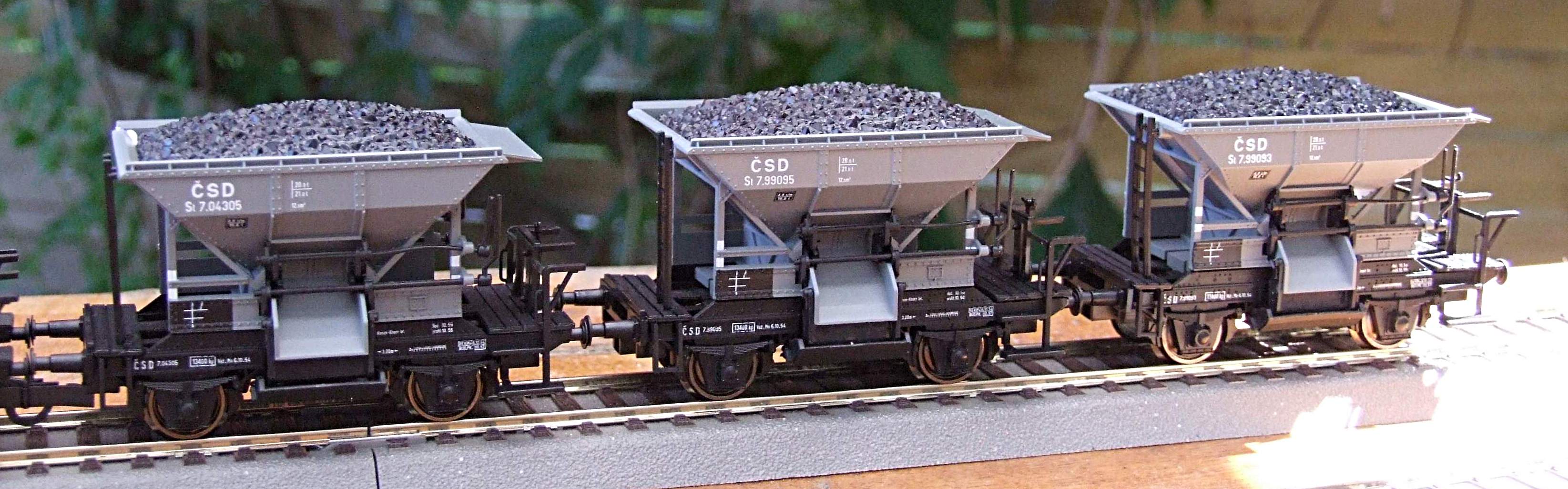 Dobrý dotaz, proč ne. Byly čtyři červenohnědé (chybí ještě 7-84513), přičemž 7-99070 byl tmavší, jen hnědý, a taky nejstarší. Šedých byl pětivozový set (St 7.04305, 7.99095, 7.99093 - ty mám a pak snad 7.99097 a 7.99091 - ty čísla mám někde v útrobách PC - tak ať mě někdo případně opraví. Ty nemám. Mám ale jeden 7.99093 navíc (nový, nejetý top stav), tak kdyby někdo měl navíc jeden z těch dvou, můžeme směnit :-) Jak moc sedí všechny ty čísla netuším, ale těch vozů tu bylo tolik, že je to možný. Několik se jich dochovalo (MDC, ZMŽ) takže vůz je to reálný. Nakonec byly tu obě provedení, tedy i to se ukosenou horní hranou, což vyrábí např. Fleischmann, takže lze dál doplňovat.
