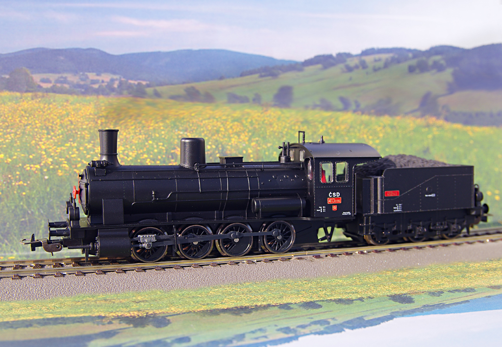 Lokomotivu 413.0 před časem vydala také Brawa, v podstatně detailnějším provedení, ale taky za podstatně vyšší cenu. Protože se mi cenově zajímavý model od PIKO i přes jeho zjednodušené provedení zalíbil, rozhodl jsem se k lehkému "faceliftu" do smyšlené podoby, v jaké by hypoteticky mohla lokomotiva jezdit. Ten spočíval ve vyjmutí původních dýmničních dveří, jejich odbroušení a nahrazení typem ČSD, změně čísla lokomotivy na 413.096 (která snad mohla mít písečník umístěný tak, jako má model, a asi jezdila v Bratislavě i ve Veselí na Moravě ... ). Přebarvil jsem velmi plastově vypadající křižáky šedostříbrnou barvou a uhlí v tendru přestříkal matným bezbarvým lakem, aby nevypadalo tak uměle.